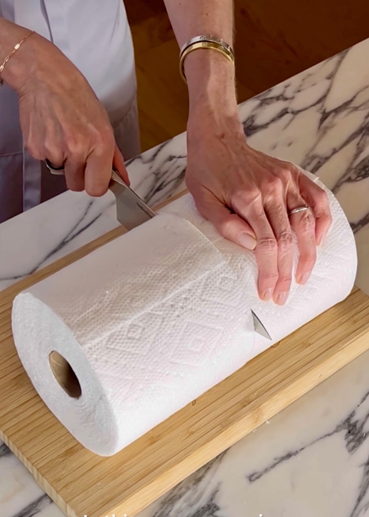 My family is notorious for using a crazy amount of paper towels, and these days, the prices for paper towels are crazy! I have a solution. I started cutting my paper towels in half. This way, they end up using half as much!