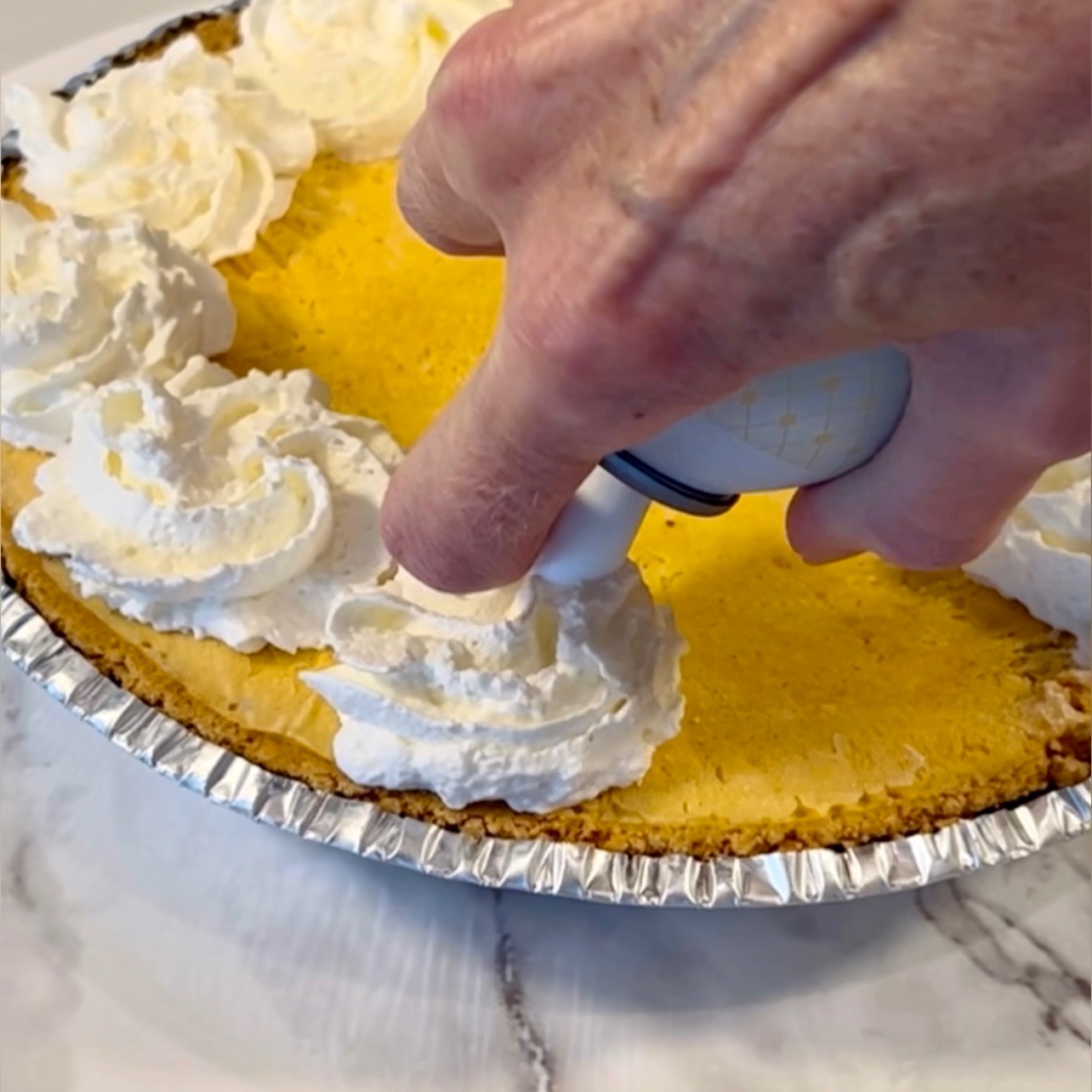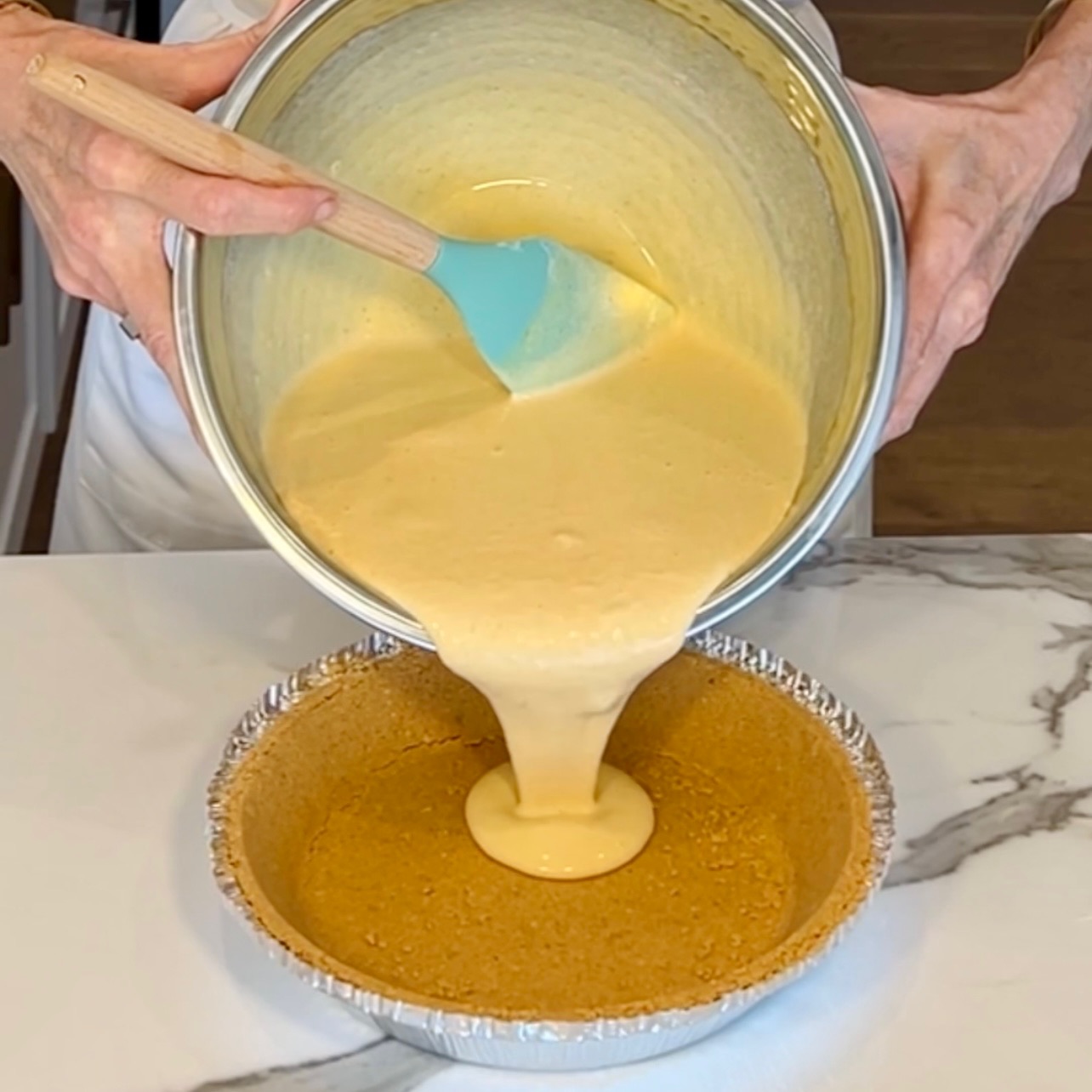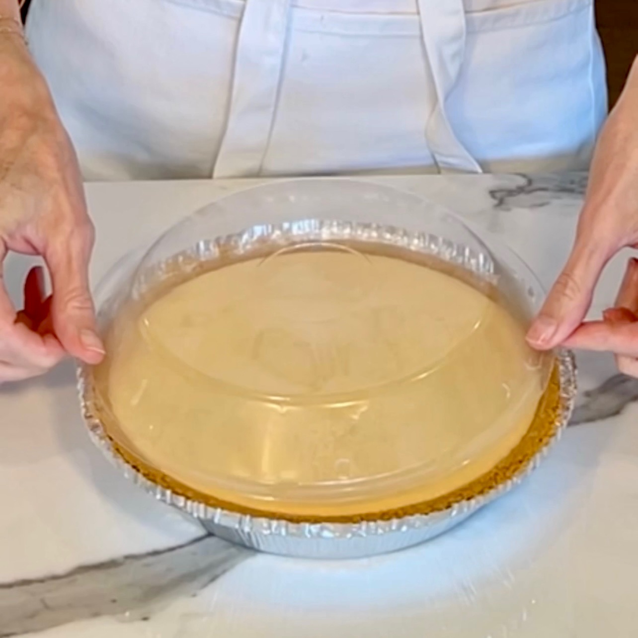 Note: depending on the size of your pie crust, you may have extra filling left, just pour that back into the container, freeze and enjoy and extra treat!