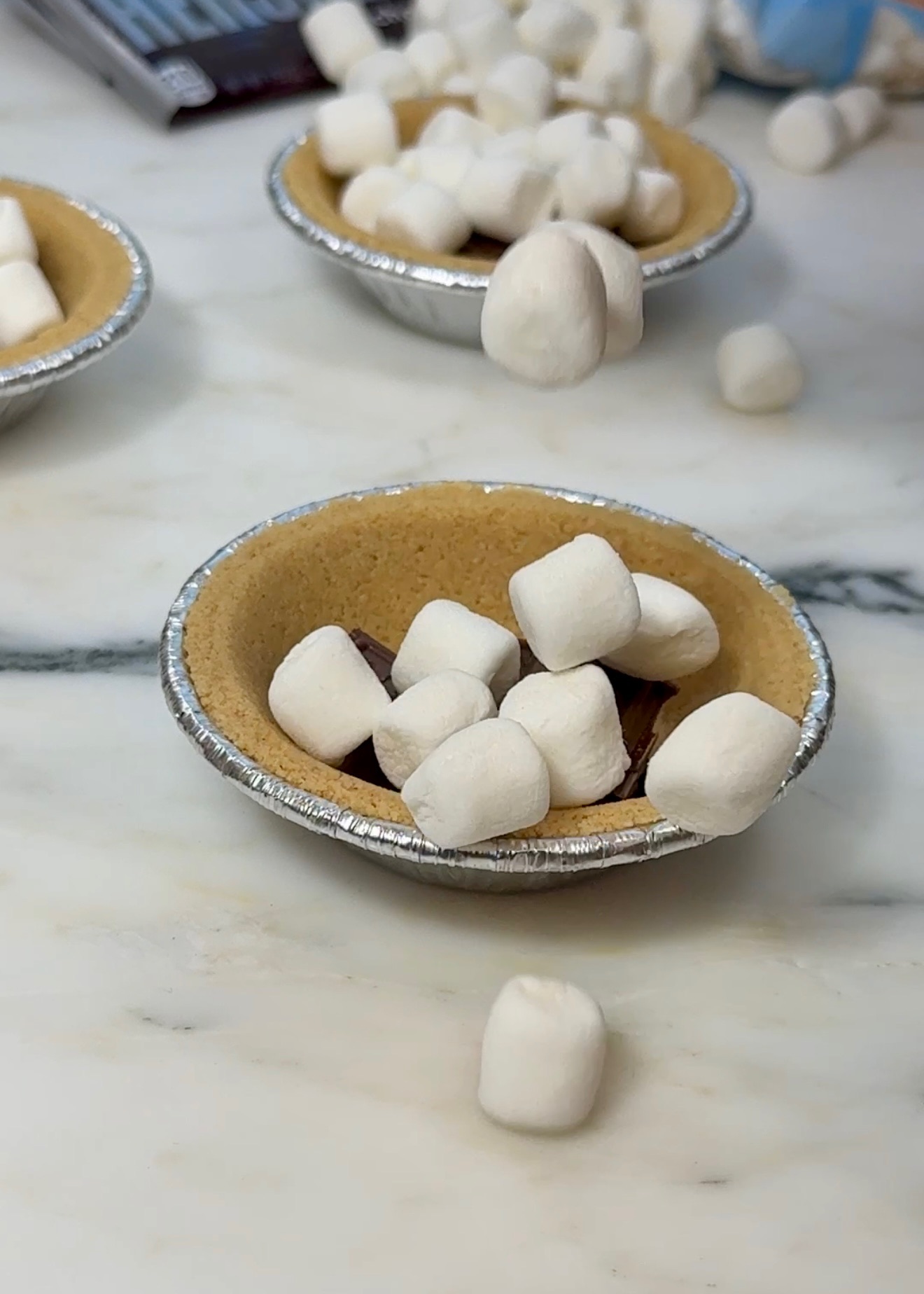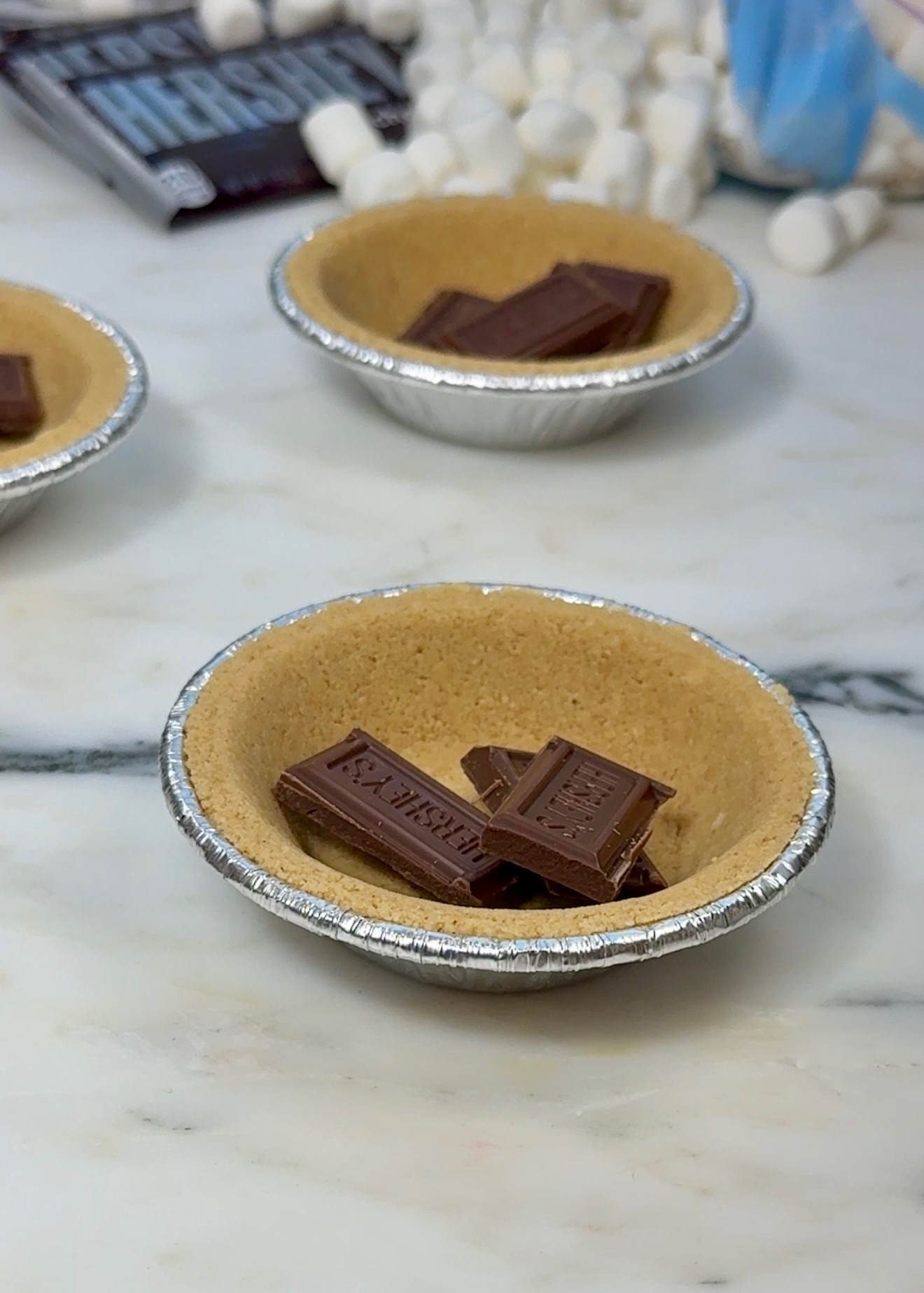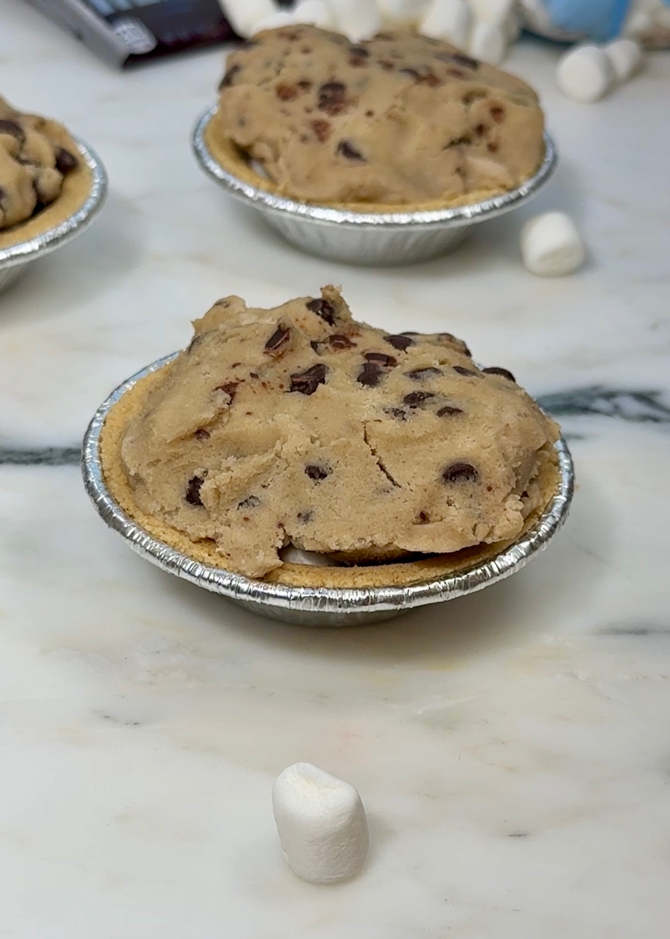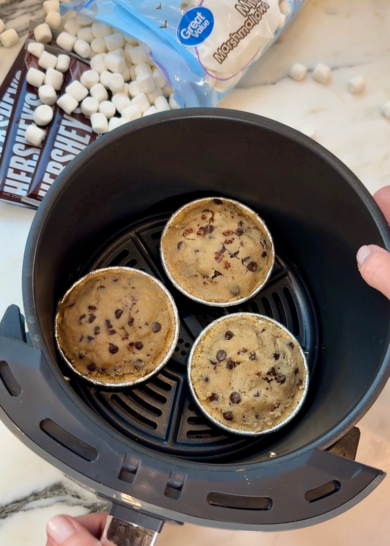 Introducing the s’mire, the s’more pie! Start by using mini pie crust containers then add in your mini marshmallows and chocolate pieces. Finish it off by topping it with cookie dough and pop them in the airfryer for 10 minutes at 330F. You’ve got all of the layers of a s’more plus some gooey cookie goodness! The only issue is that this s’mie is just a little too easy to make.