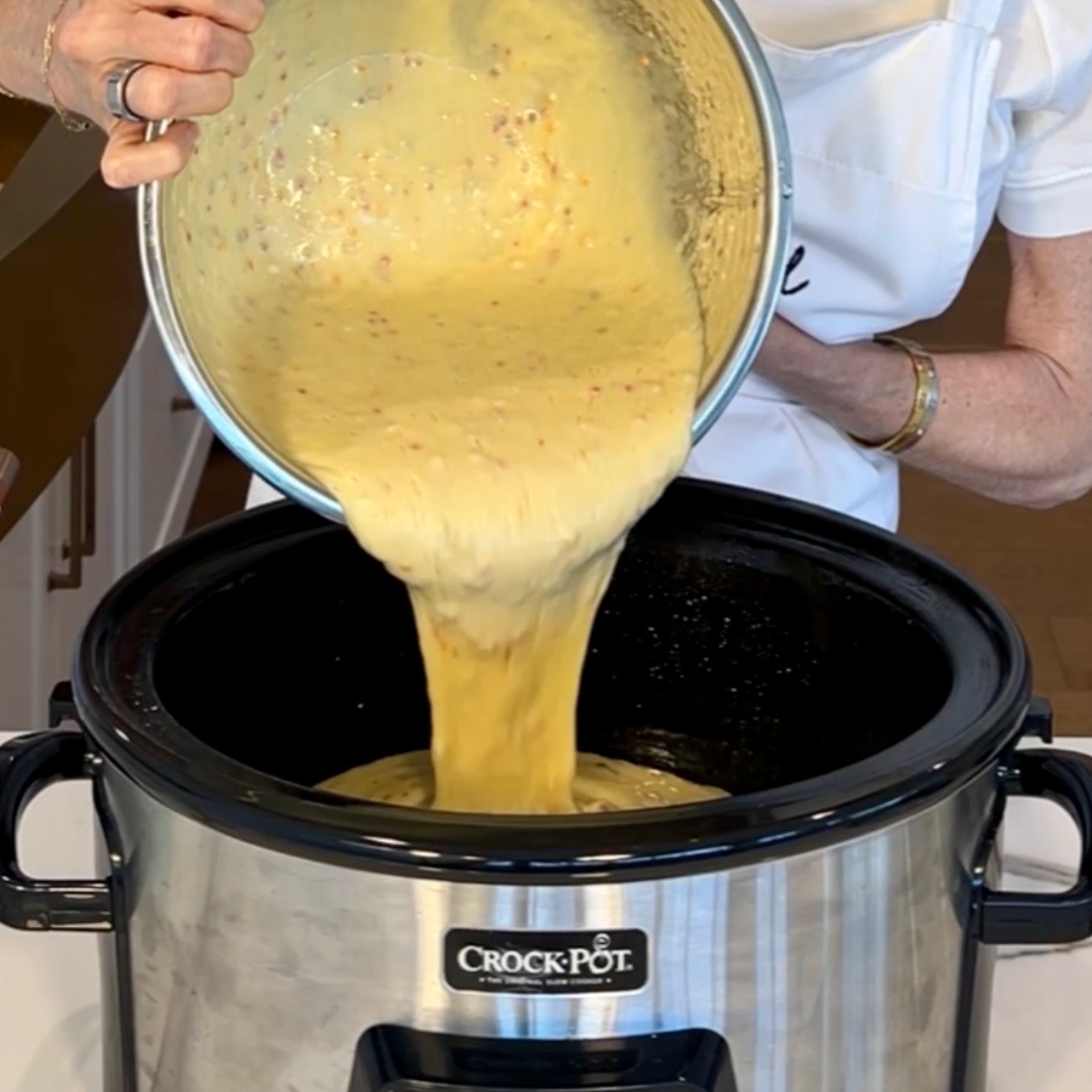 Spray crock pot and pour in.