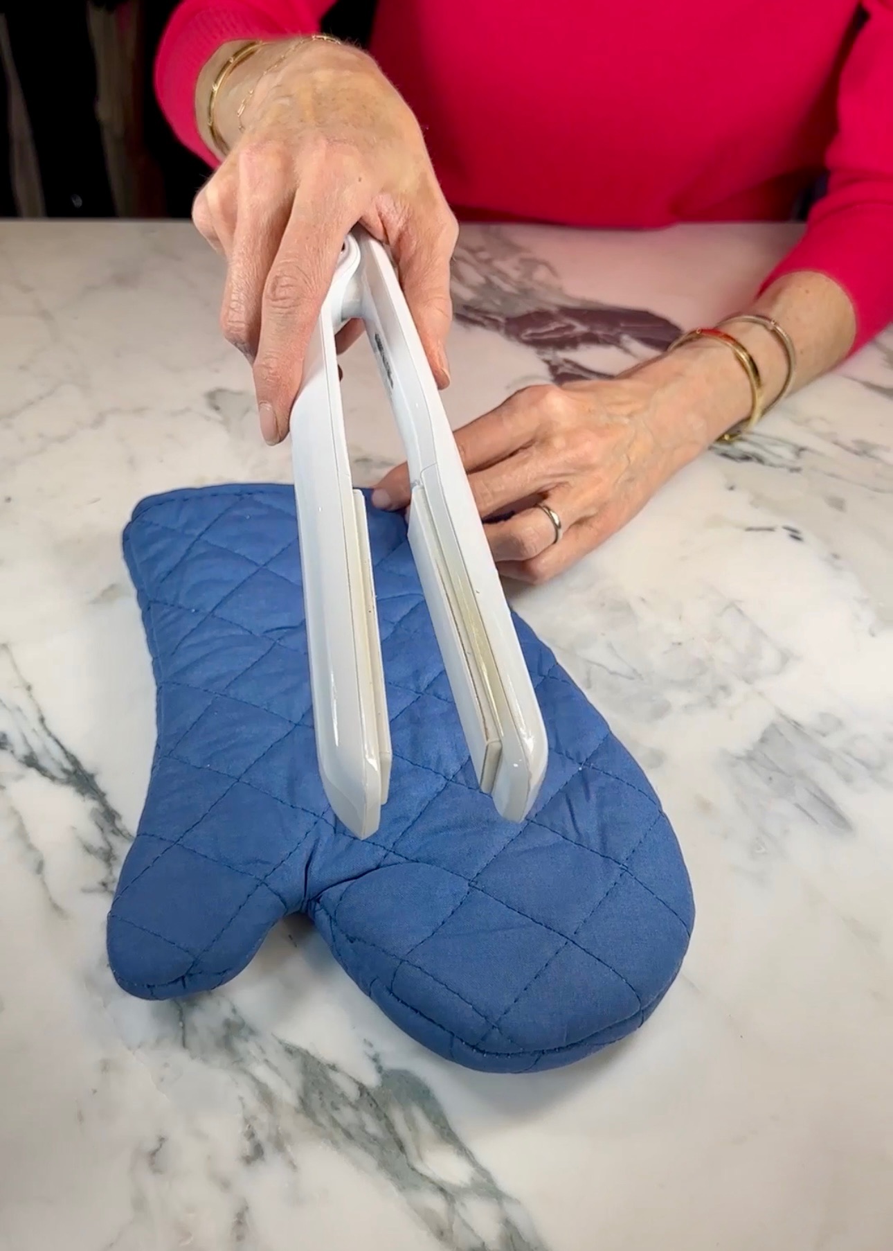 Hack #3: run and grab an oven mitt! When you’re traveling, you don’t always have time to let your irons cool down and this easy hack is the answer.