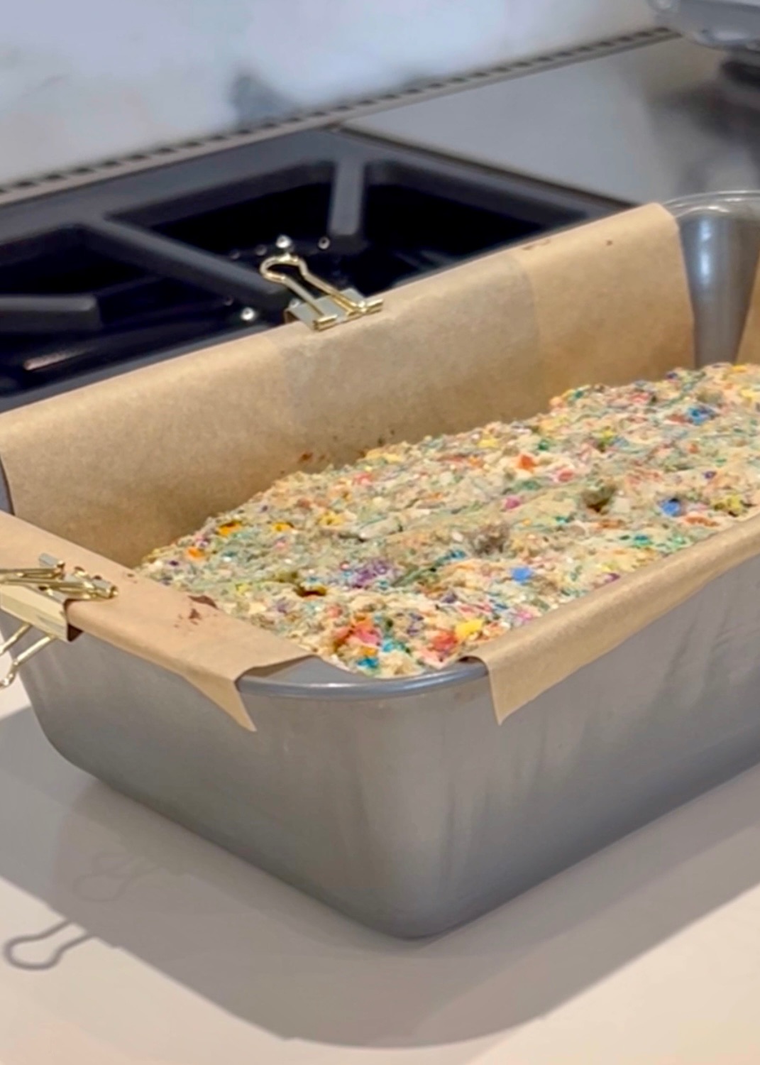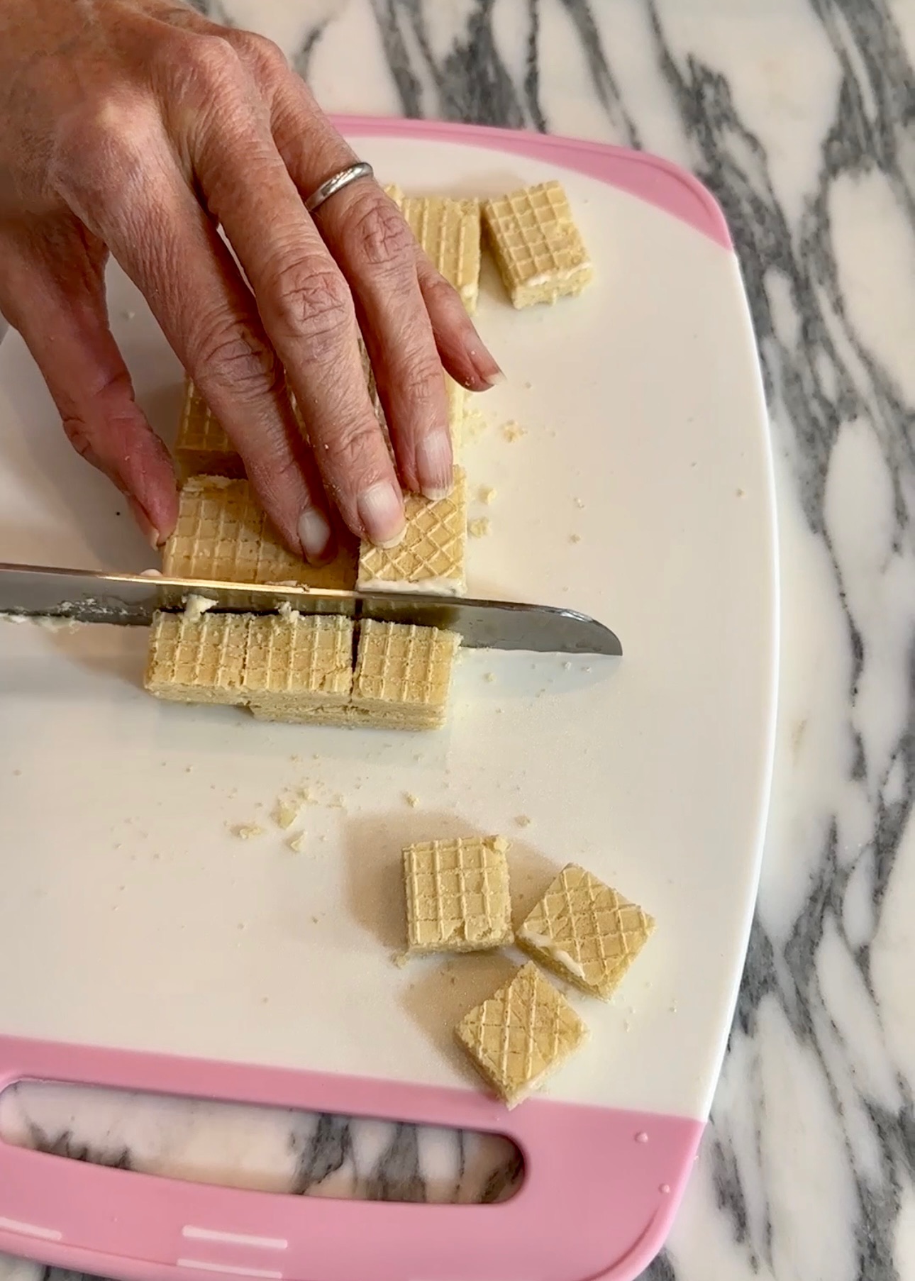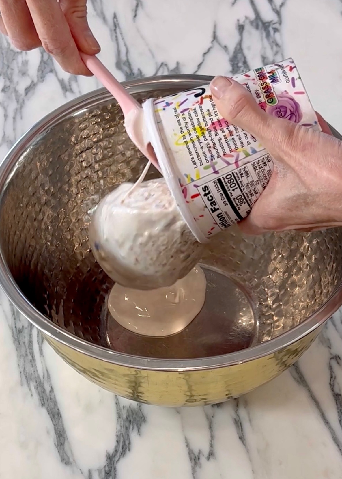 Start by grabbing your waffle maker (preferably mini) and waffle mix of choice. Here’s the link to my mini waffle maker!