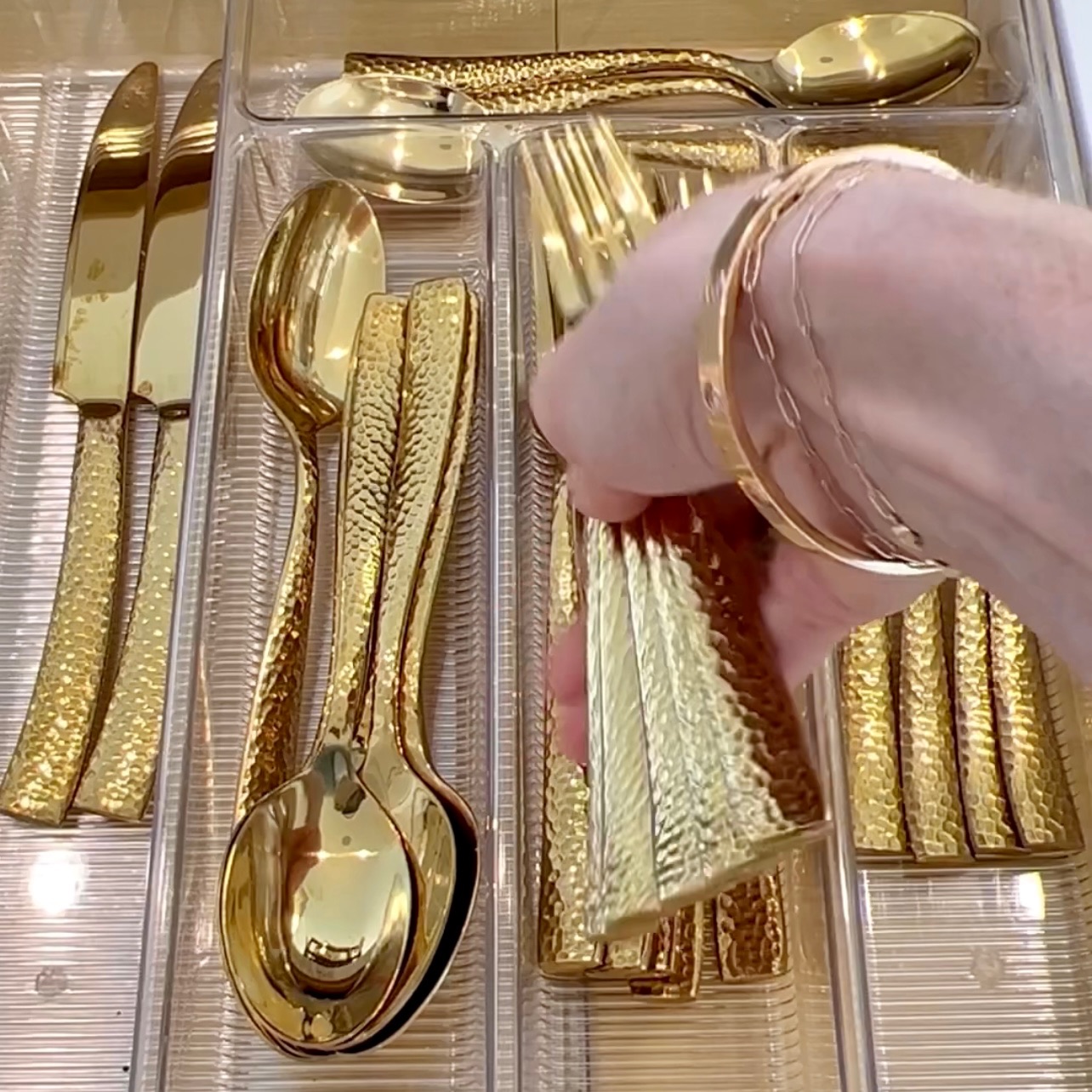 For flatware, categorize on the front end. Separating them may take a little getting used to but when you’re unloading, you’re going to love it.
