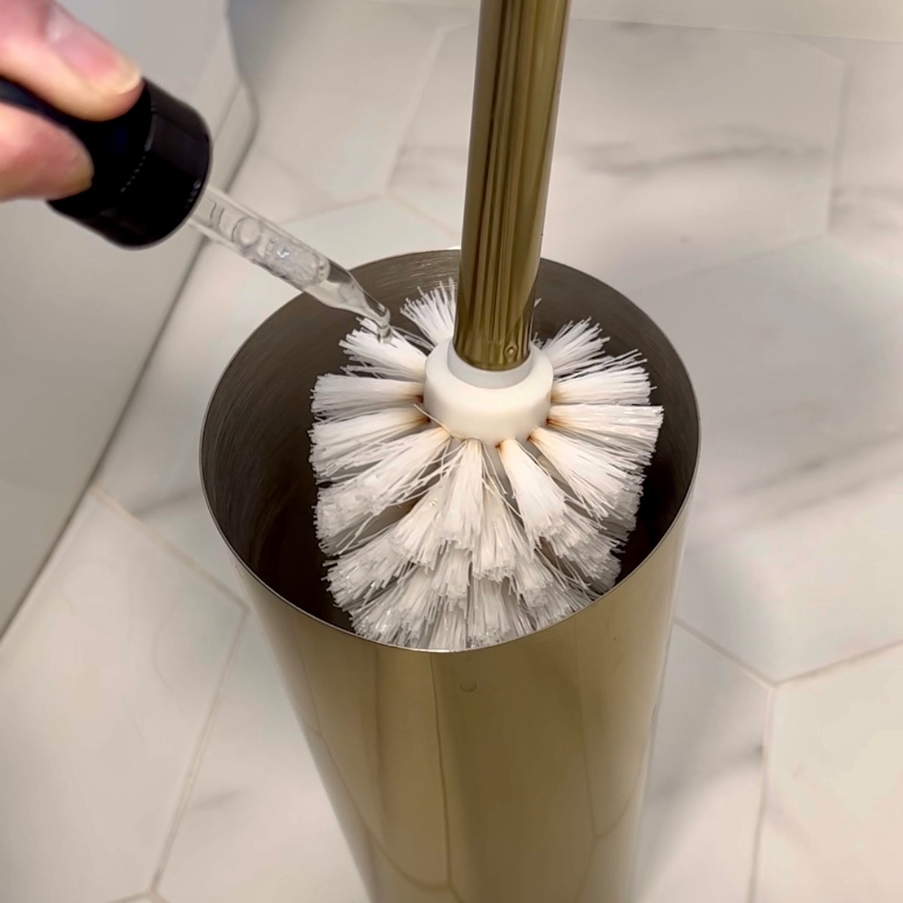 Then the toilet paper roll, the tank, and your brush are also great spots!