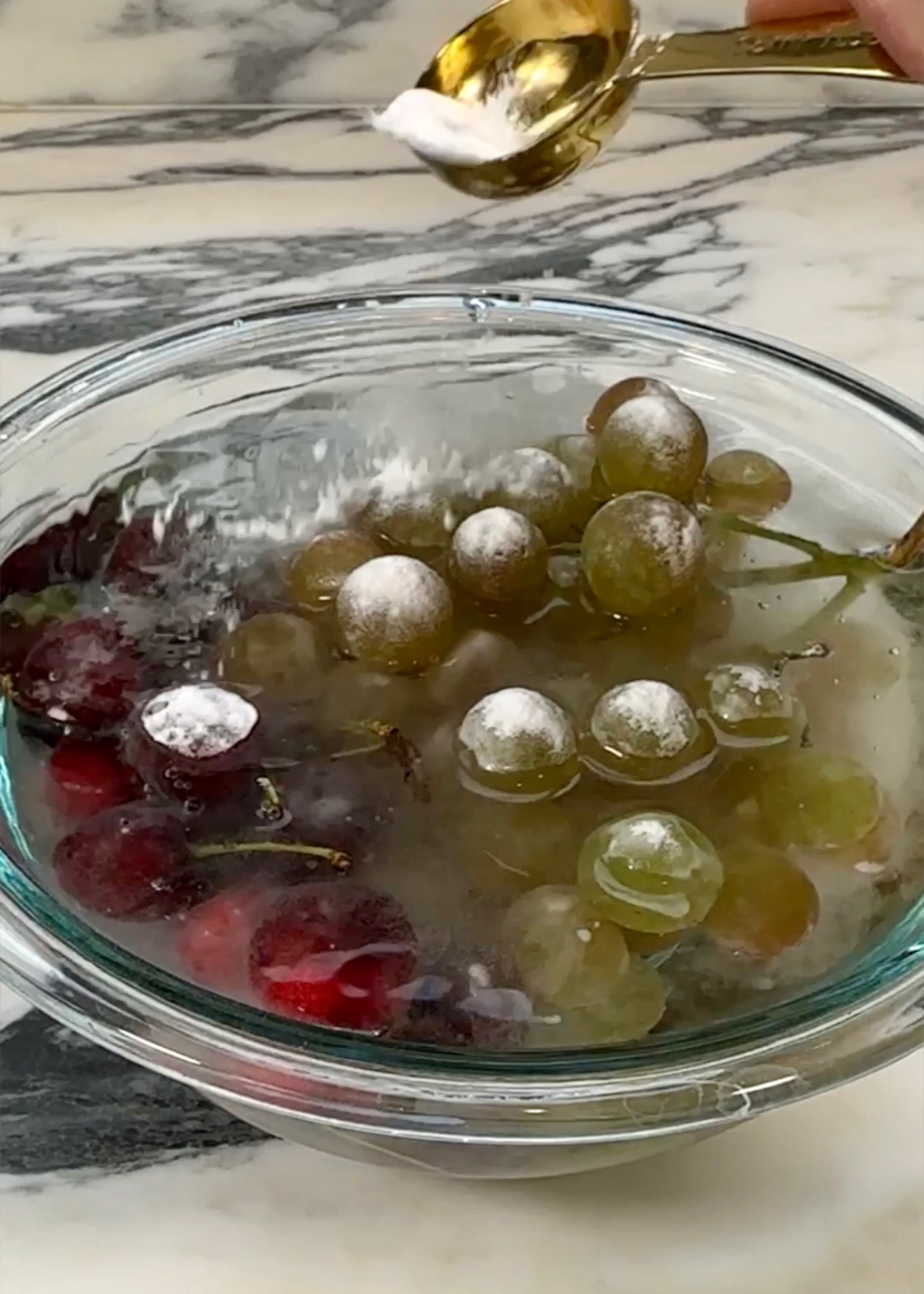 Fruits like berries, apples, cherries, and grapes are all going to get the same treatment: soaking.
