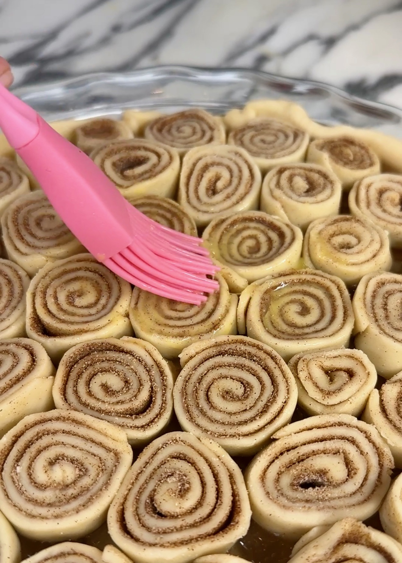 Place on top to cover filling. Brush top with egg wash (1 egg + splash of water) and more cinnamon sugar mixture.