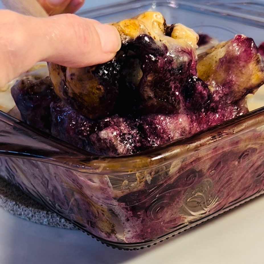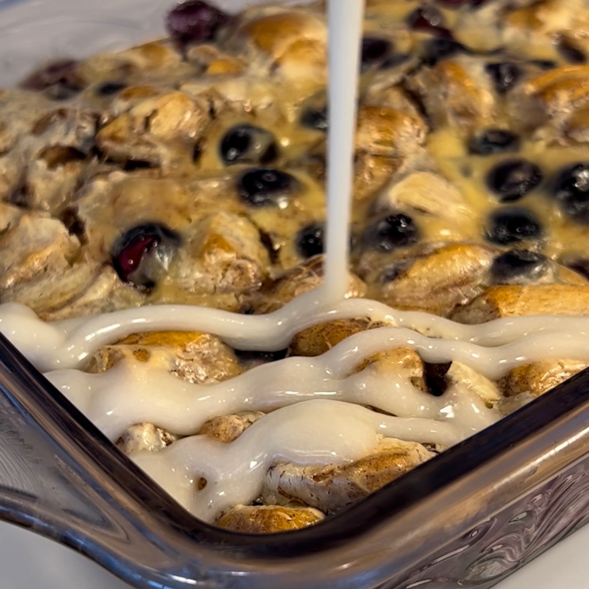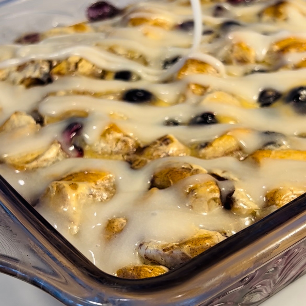 Here’s another easy and delicious cinnamon roll hack! It’s the 4 ingredient blueberry buckle! This sweet treat tastes like if cinnamon roll and bread pudding had a baby. You’re going to love it!