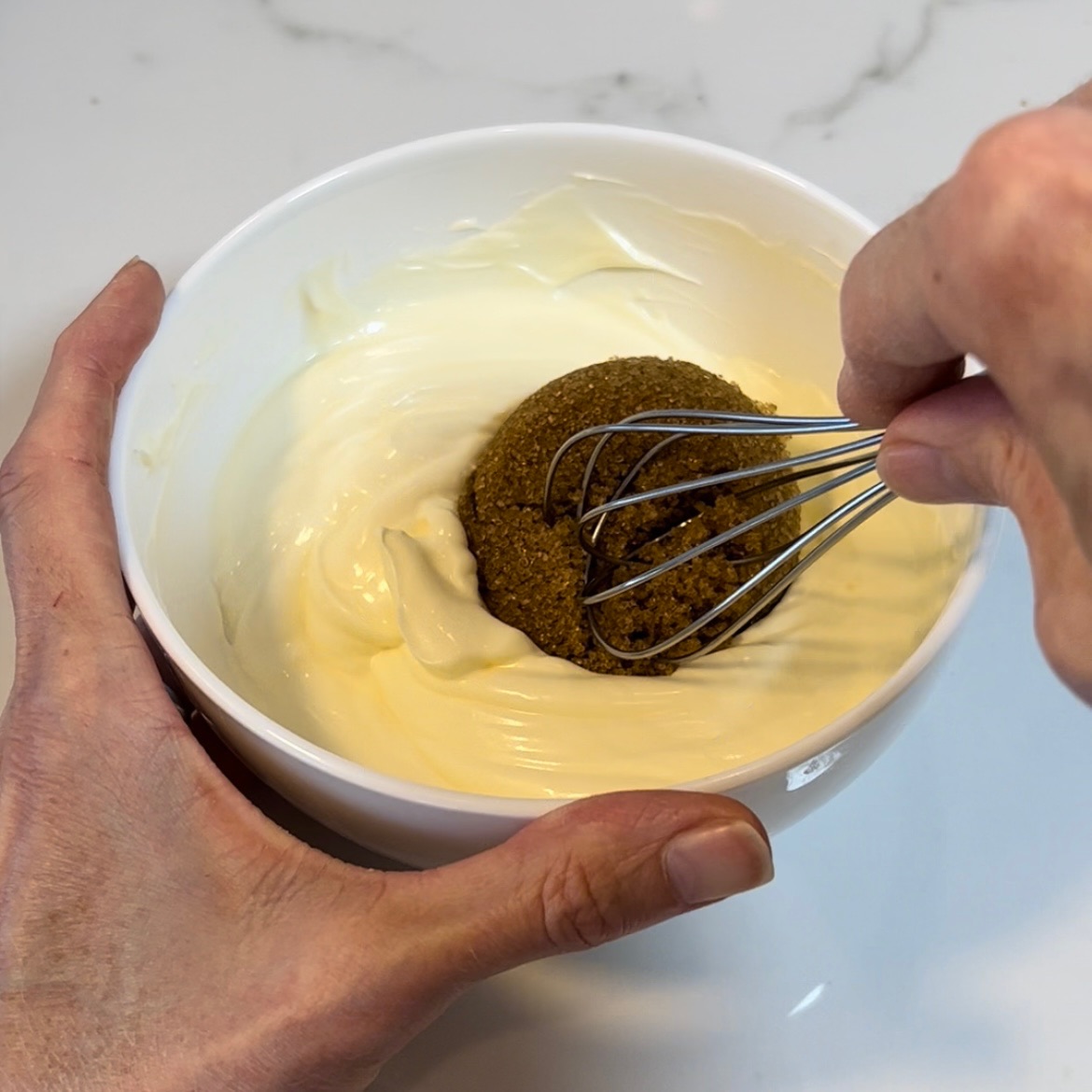 Top with frosting packet while warm. Note: can be made with DF cream cheese!