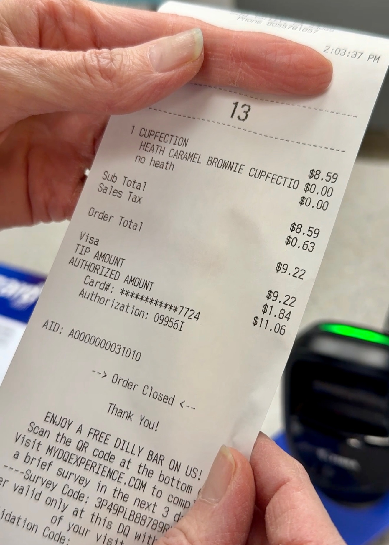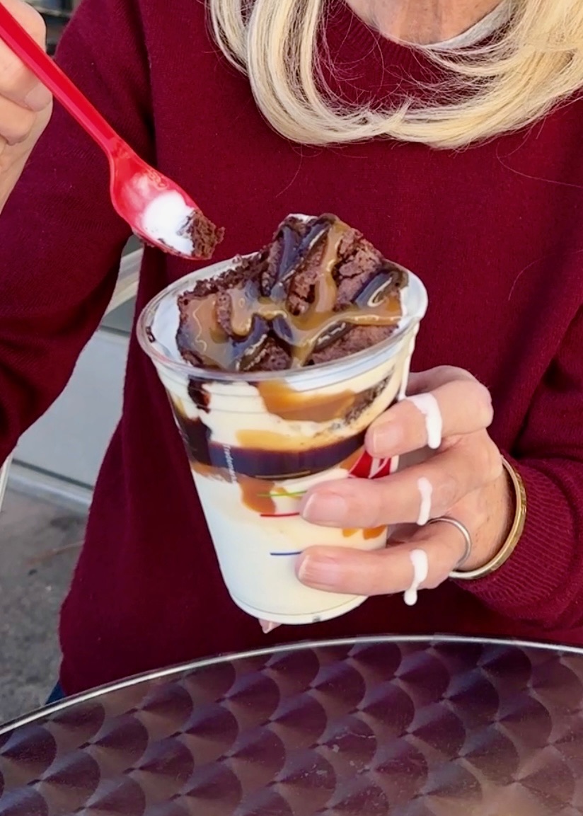 The Dairy Queen original, a Heath Caramel Brownie Cupfection, came to a total of $9.22 (yes, nine dollars for one sundae 😳). Don’t get me wrong, it’s delicious. The ice cream is rich, the caramel drizzle is generous, and the brownie on top is warm and gooey…everything you’d expect from DQ.