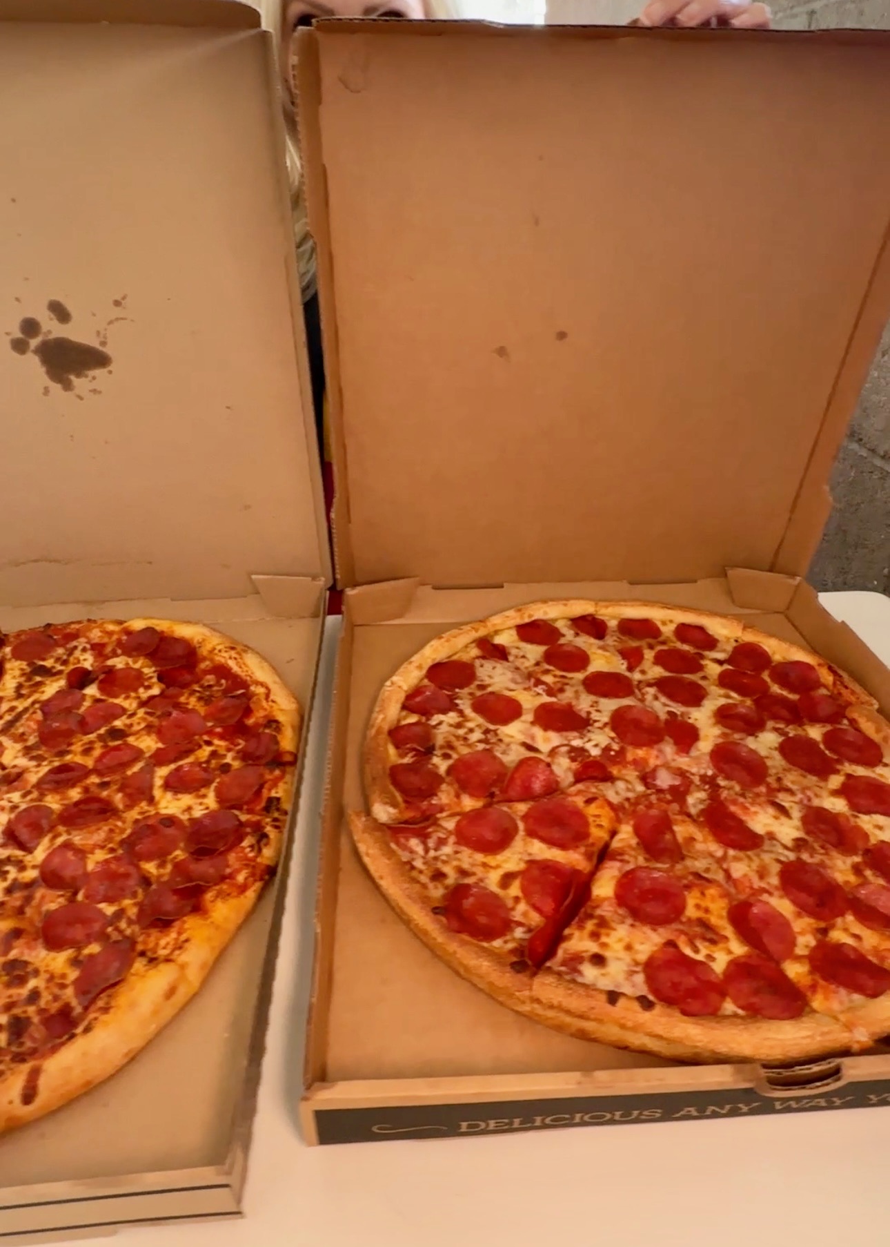 WHICH ONE WILL WIN? Have you tried the pizza at either store? Both a HUGE DEAL and delicious…but each in their own way! I’ve had so many requests for this challenge I thought I’d better get it up before the Super Bowl so you can start your party planning ?? Good news: both places let you call and order in advance ? Who has the best pizza? Time to find out. ?❤️?