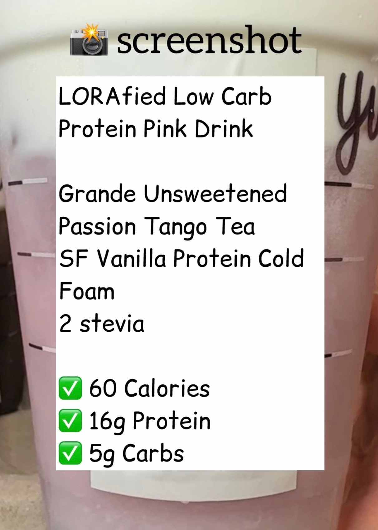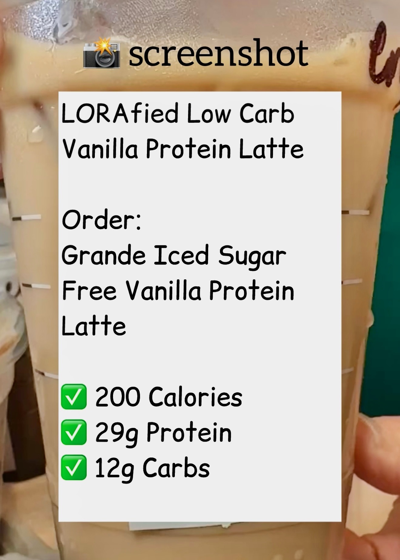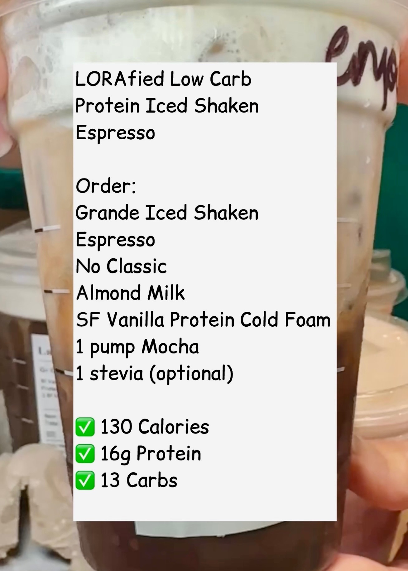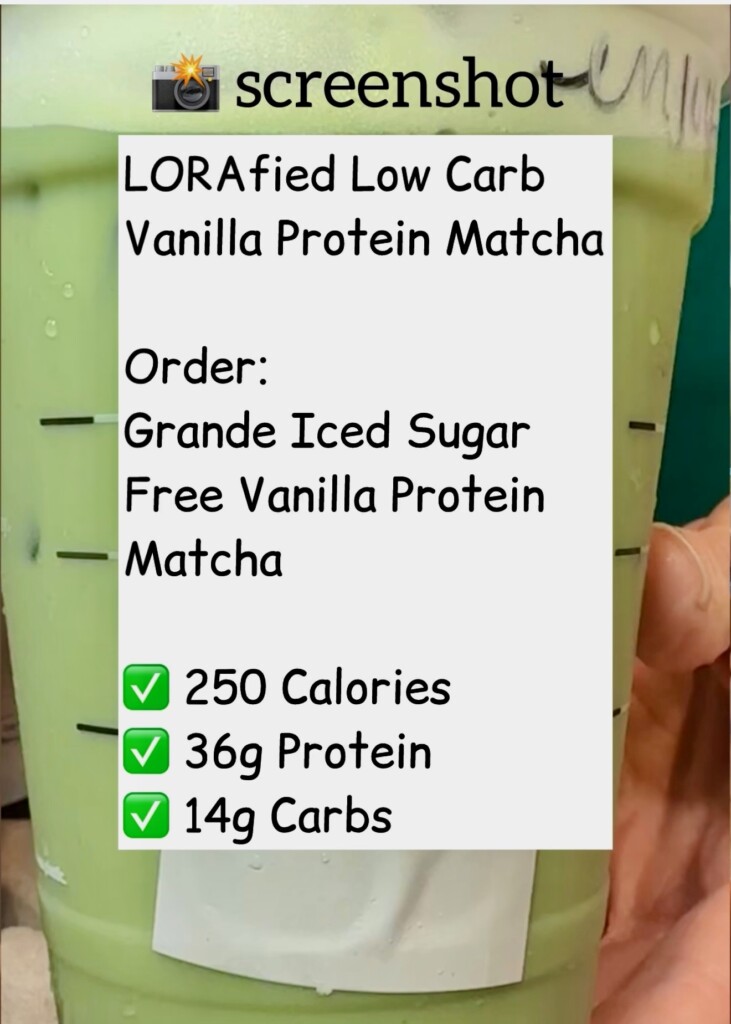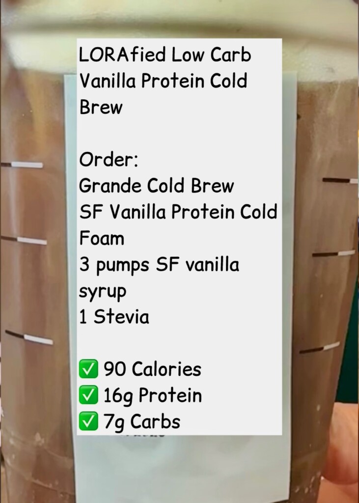 Next up in the LORAfied Low Carb Starbucks Hacks series…this protein iced shaken espresso gives you the caffeine kick and 16g of protein in one creamy sip! ☕️