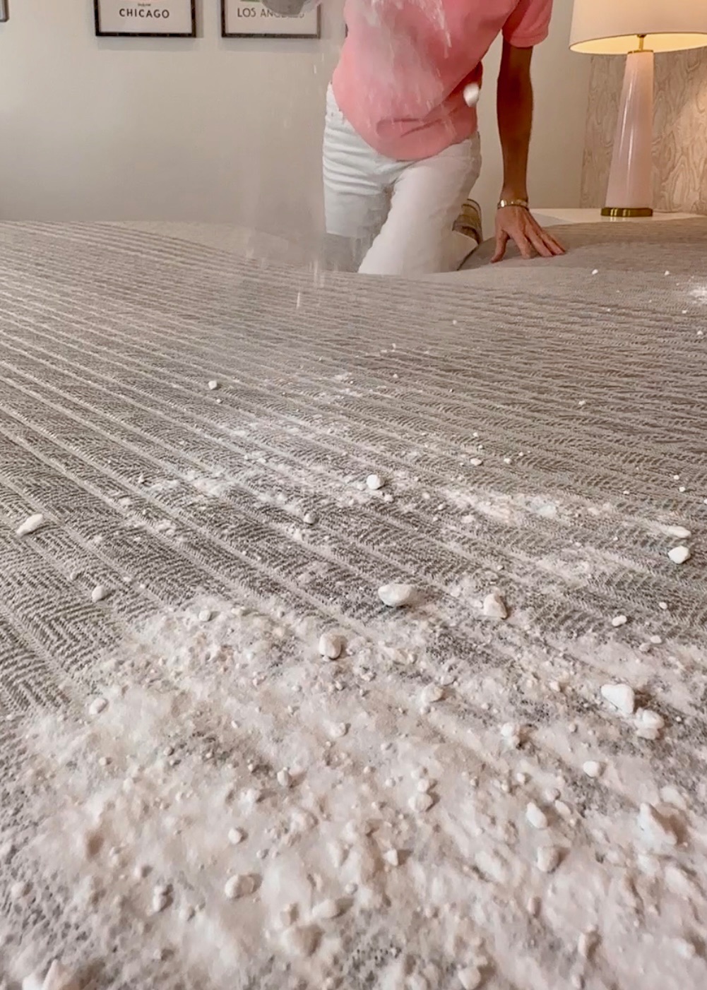 Deep cleaning your mattress might seem super daunting, but it’s really easy. Cover your mattress with baking soda. Let it sit all day to soak up those pesky dust mites, then vacuum it up.