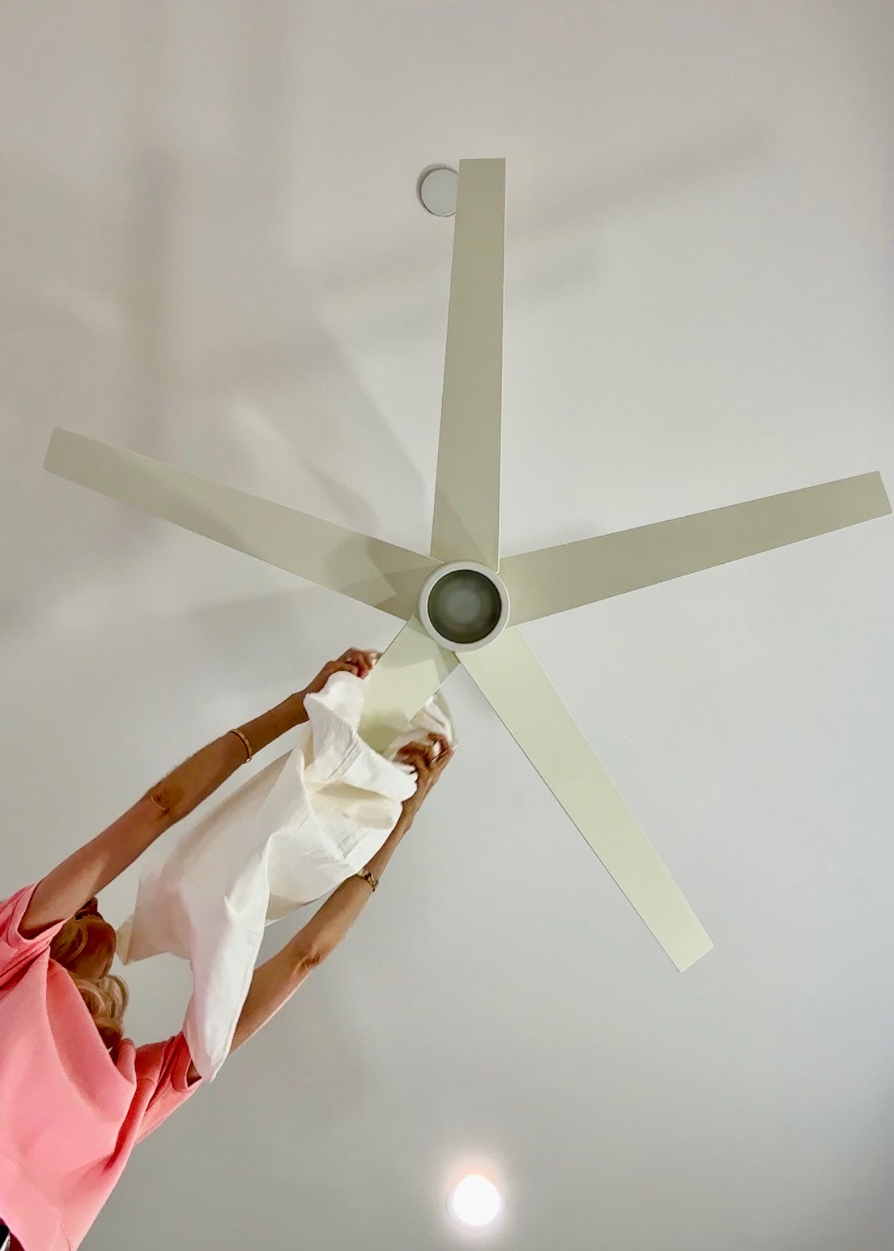 Finally, to clean your ceiling fan, grab a pillow case and slide them over. The dust will stay inside and won’t fall to the ground!
