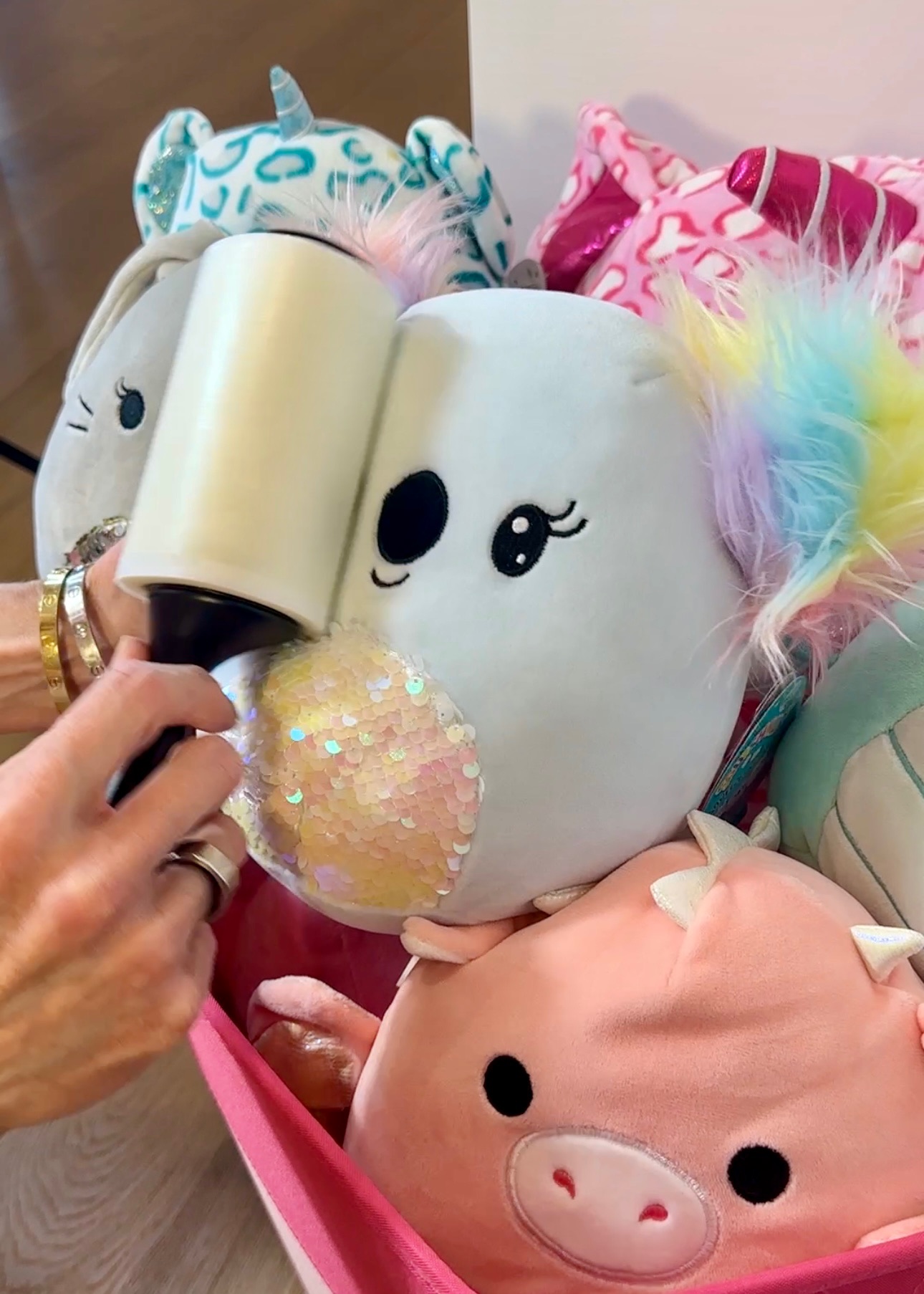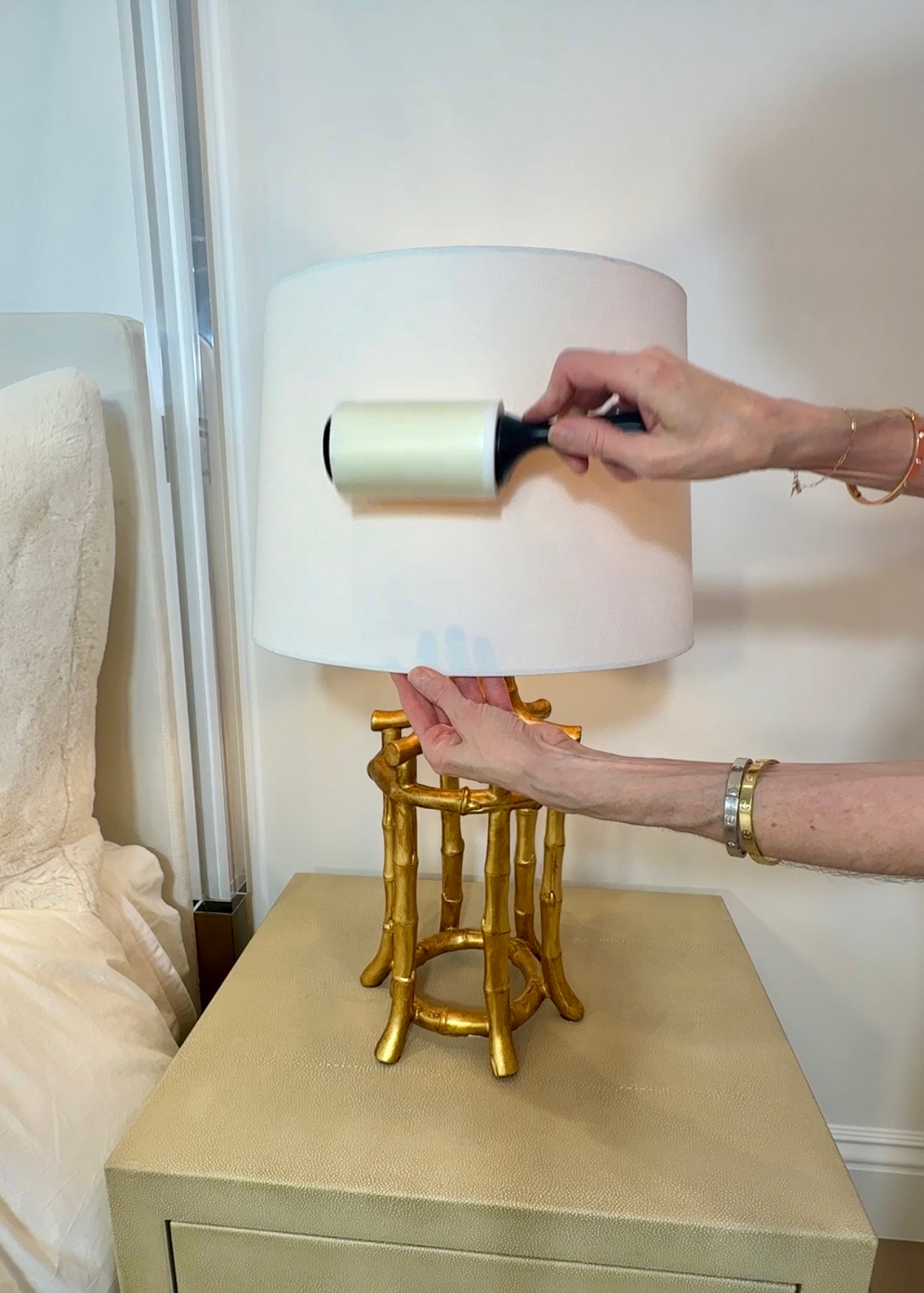 Now, go grab your lint roller. This guy is fantastic for items that are delicate and hard to dust. I love using these guys on things like lamps and stuffed animals.