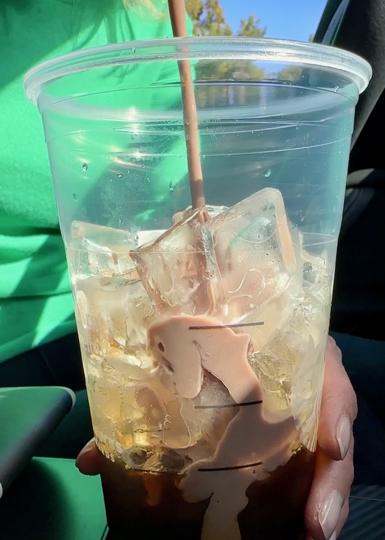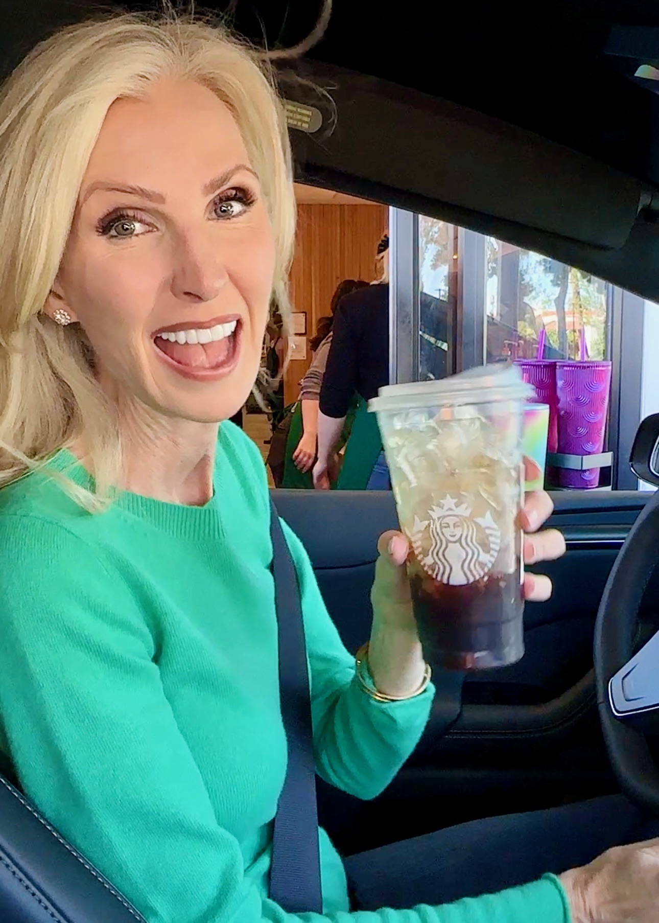 This is the BEST low carb latte hack out there! I order a large cup of ice with 2 shots of espresso, then I add my own low carb, high protein shake to the cup. The regular way Starbucks makes it has 49 net carbs! Adding your own shake will make it so it only has 5 carbs (and my shakes have 20g of protein!)