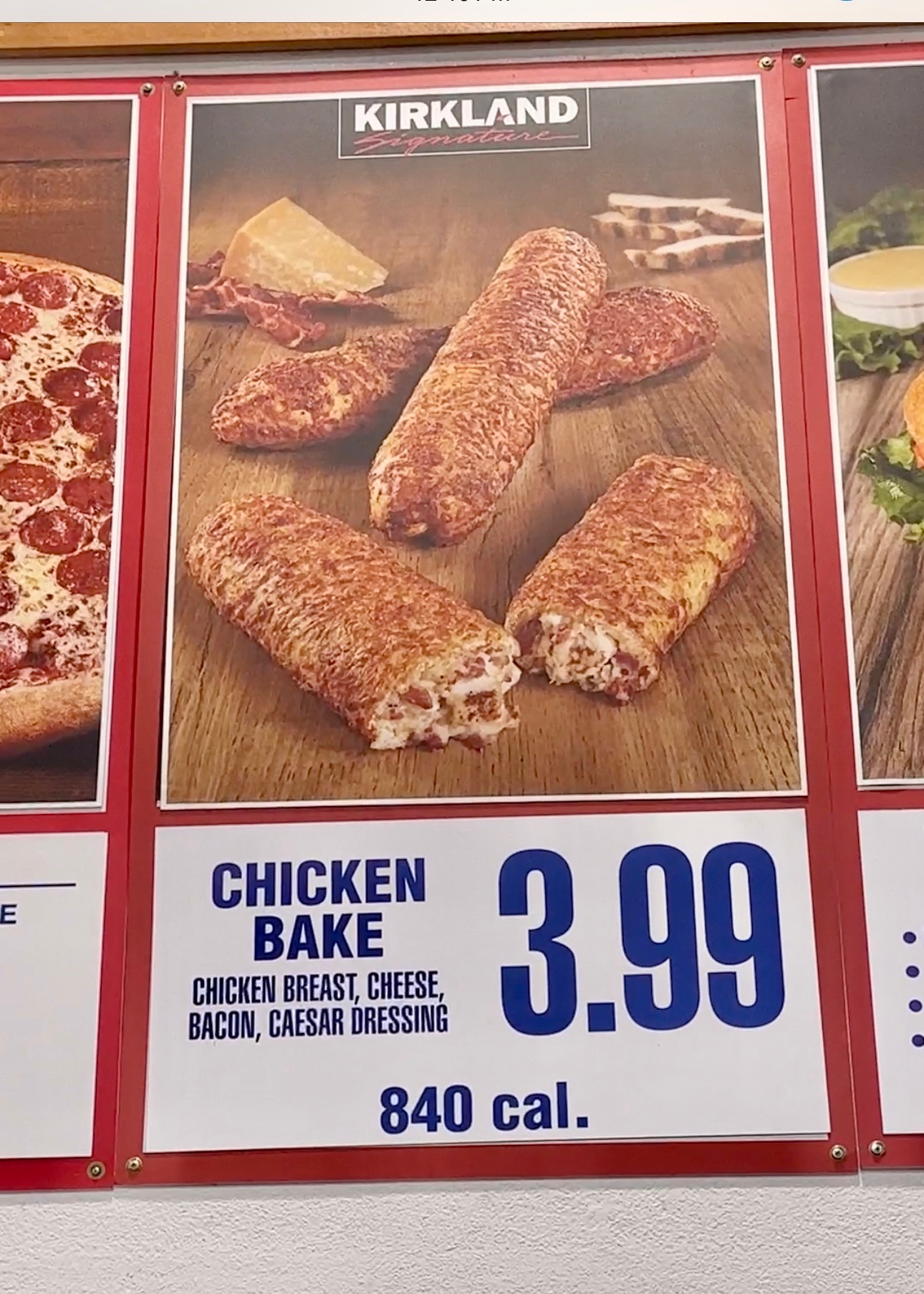 The Costco chicken bake has a whopping 76g of carbs. A great alternative? Try the hotdog with NO bun (skip the ketchup, add the mustard) for a snack with only around 2g of carbs.
