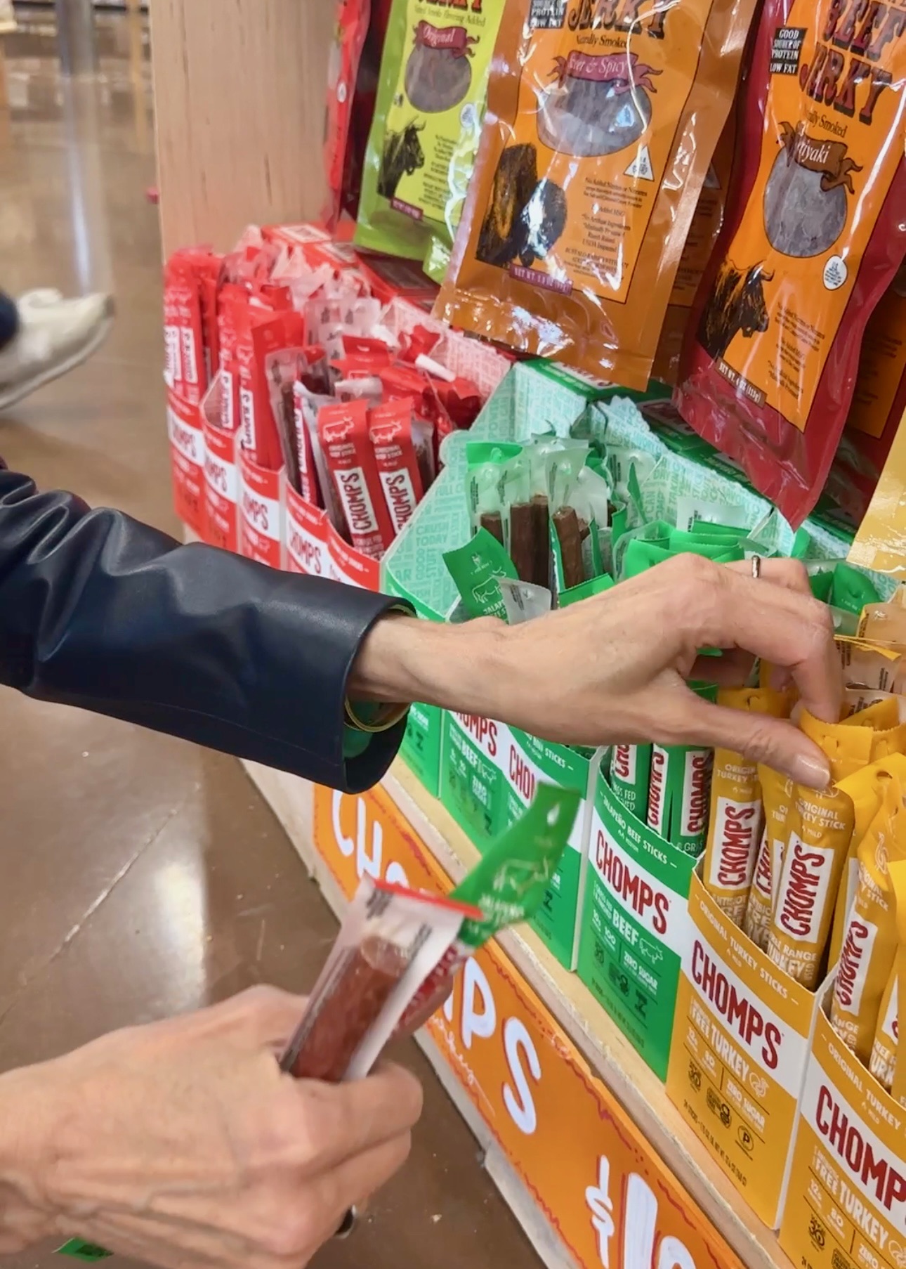 Did you know Cliff Bars have 40g of carbs?? On the other hand, Barbells Salty Peanut Bars only have 15 net carbs….and better yet, Think! Keto only has 11! If you’re more of a jerky fan, half a bag of the TJs brand is 26g of carbs versus the Chomp Sticks which have none!