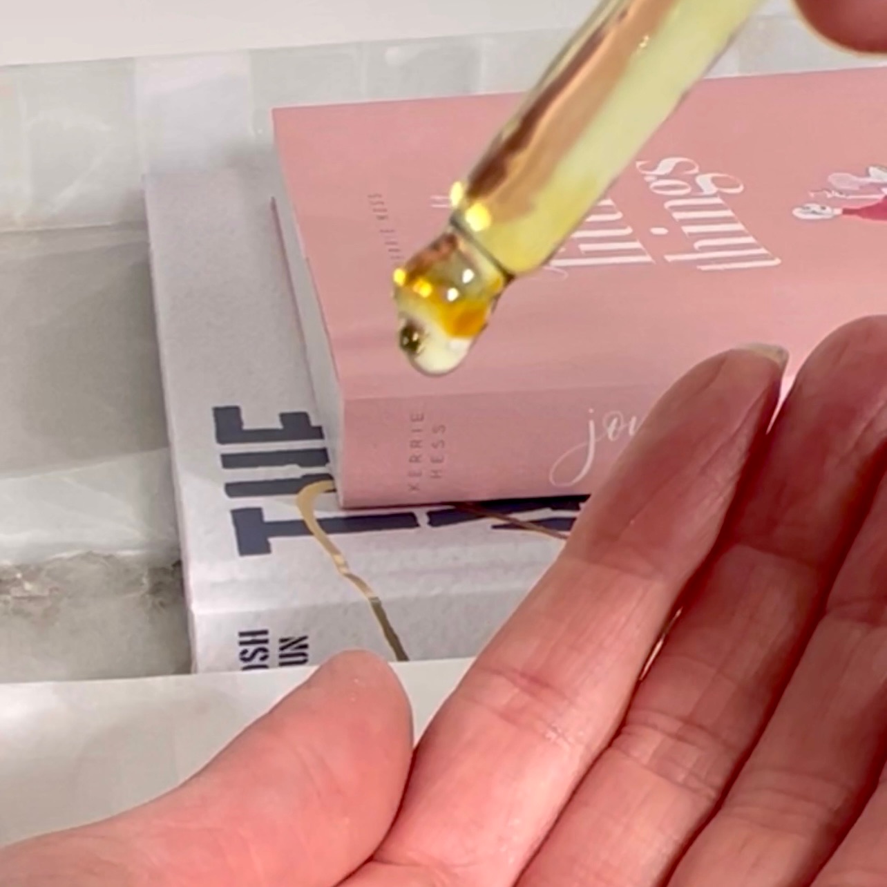 Tip #2: Grab a calming essential oil! I use the Uma Chamomile & Lavender Oil or the Vitruvi Organic Lavender Oil. Rub a little bit behind each ear, and this surprising area, in between the toes! Your feet have some of the largest pores in your body so that allows the essentials oil to seep in quicker and relax you faster!