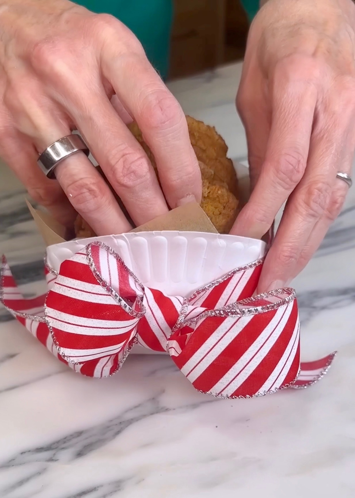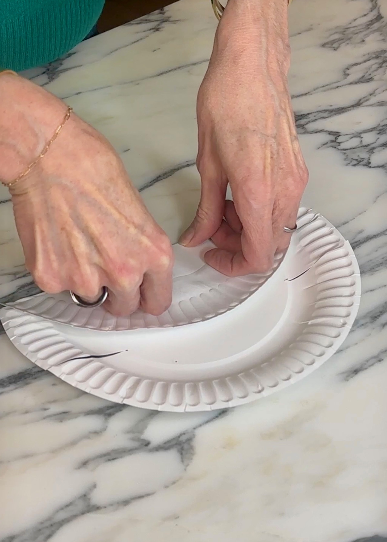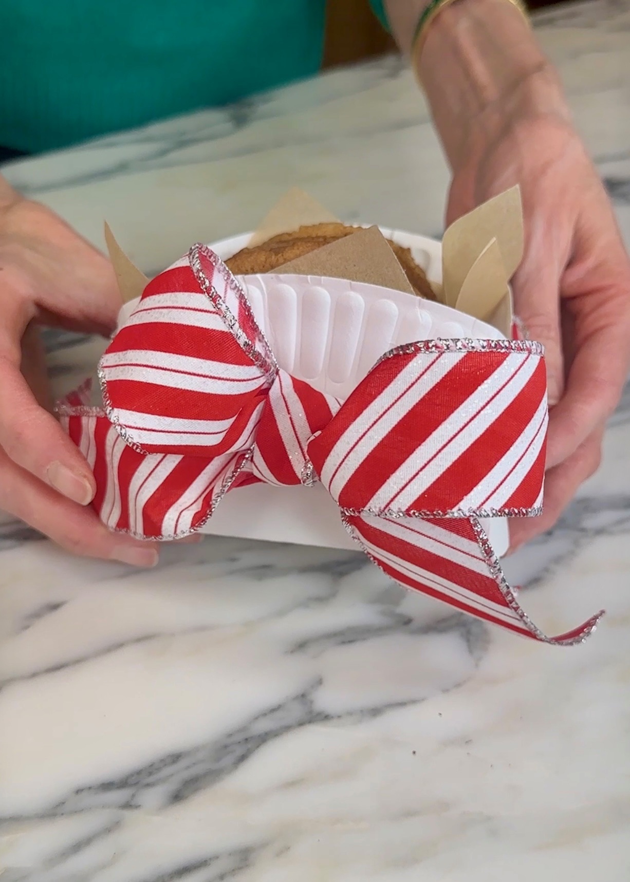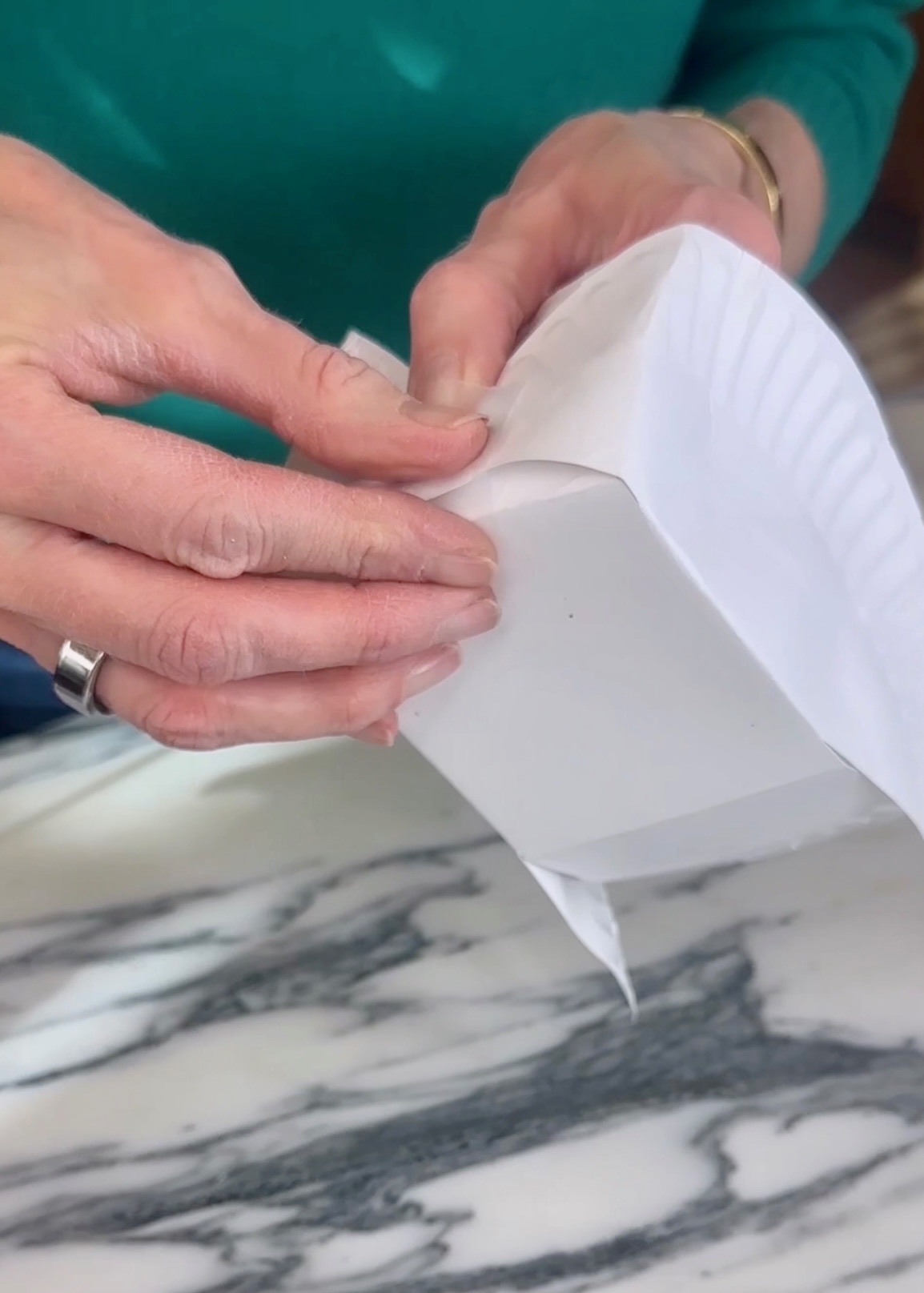 With all these great cookie hacks, we need a place to put ‘em! Did you know you can turn an ordinary paper plate into a cookie box?! Just take your plate, and make 2 cuts on each side, about 2.5” deep. Next, come in and fold. Lastly, overlap the round sides and seal ‘em up with some handy tape. They turn out so darling!