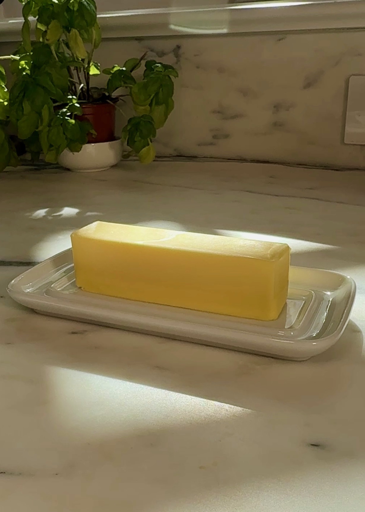 Two of butter’s least favorite tings are heat and light. Keep away from your oven and window.