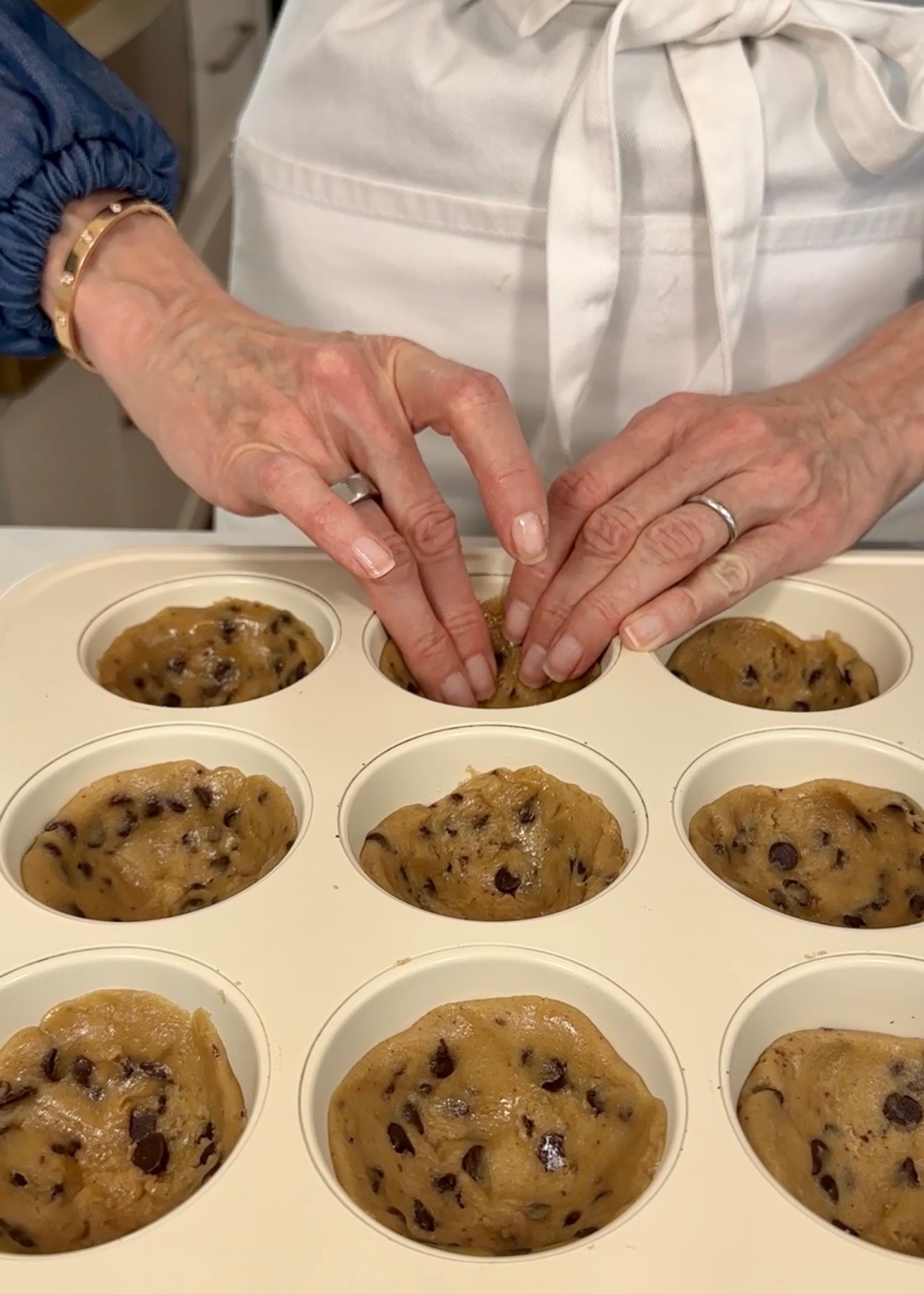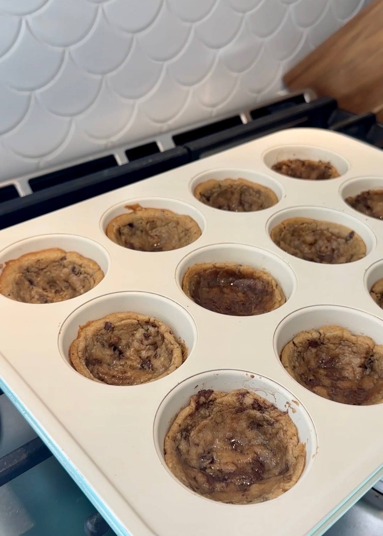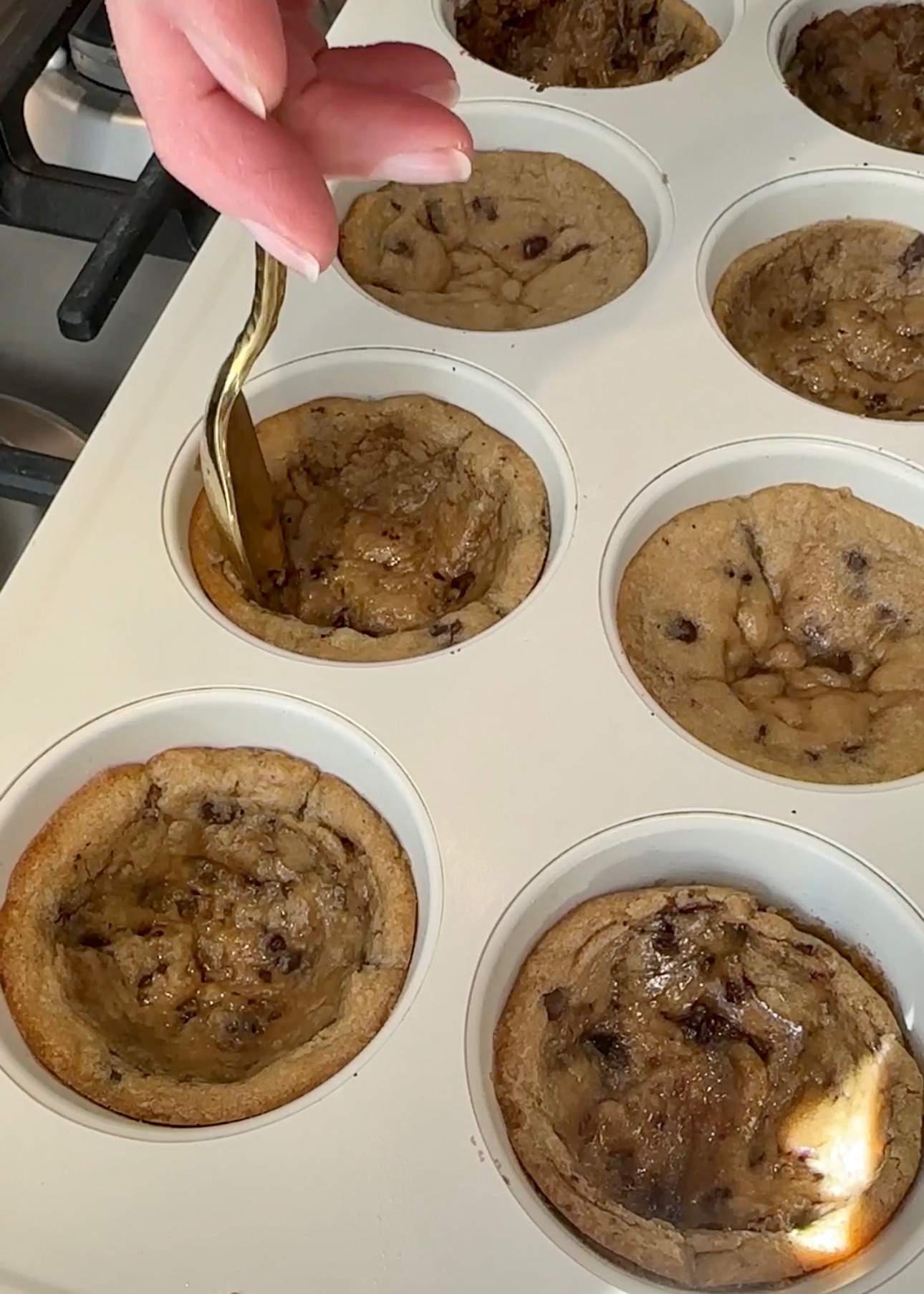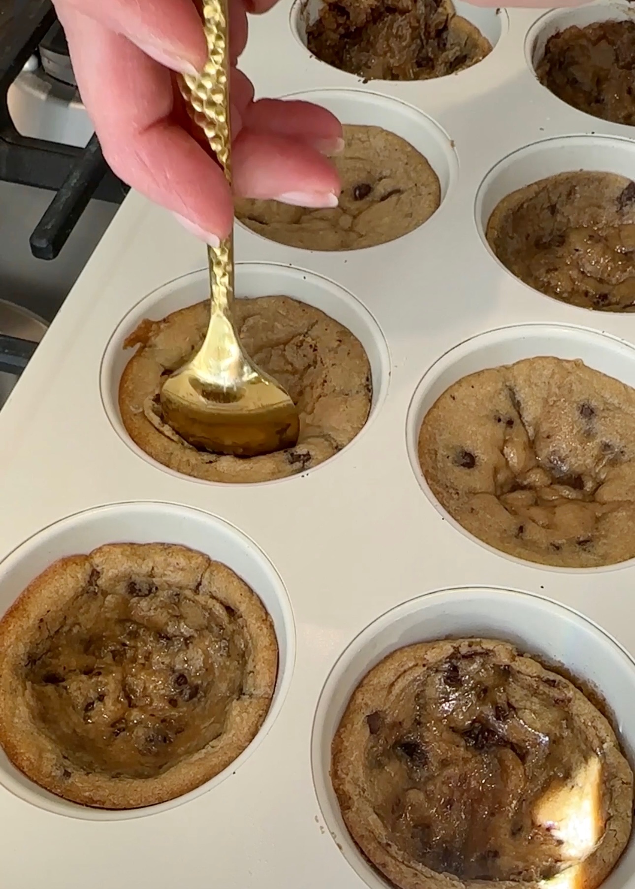 In the middle of baking (halfway on correct time), you’re going to take a spoon and gentry create that cup shape. Finally, stick ‘em back in the oven to finish baking.