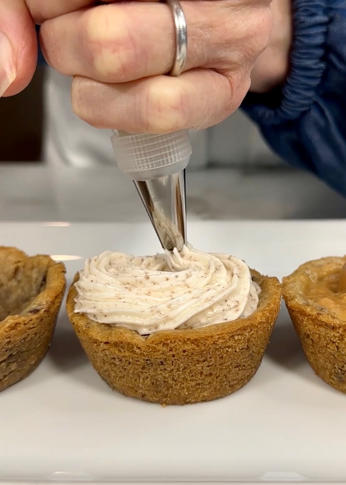 Have you ever fished for that one piece of cookie at the bottom of the glass? Me, too ? This genius cookie hack solves that by making a cup out of the cookie ? These make the perfect vehicle for anything – frosting, ice cream (less dishes) peanut butter, whipped cream…so many options! As if eating a cookie couldn’t get any better!