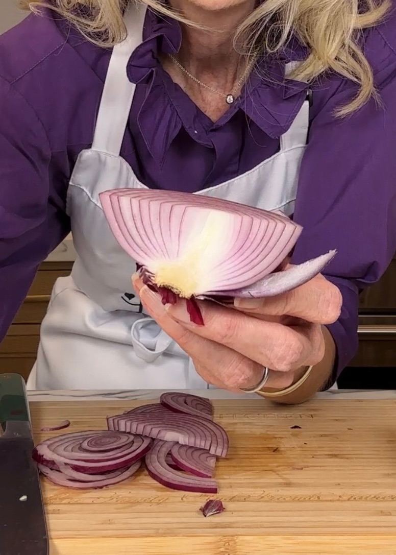 What onion cutting hacks have you tried? The goggles? Water running? Wet paper towel? Turns out you don’t need any of ‘em! This FREE & EASY HACK is a game changer! ZERO TEARS! I honestly can’t wait for you try this one and give me a call, I’m that jazzed about it ?