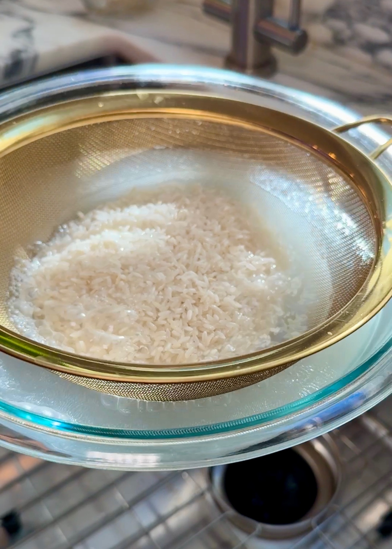Did you know all rice contains ARSENIC? That means rinsing is a MUST! The absolute bet way to remove arsenic from rice is to soak it. Soaking it overnight is the best way! The most effective way to cook it is like pasta because the extra water allows the arsenic to escape!