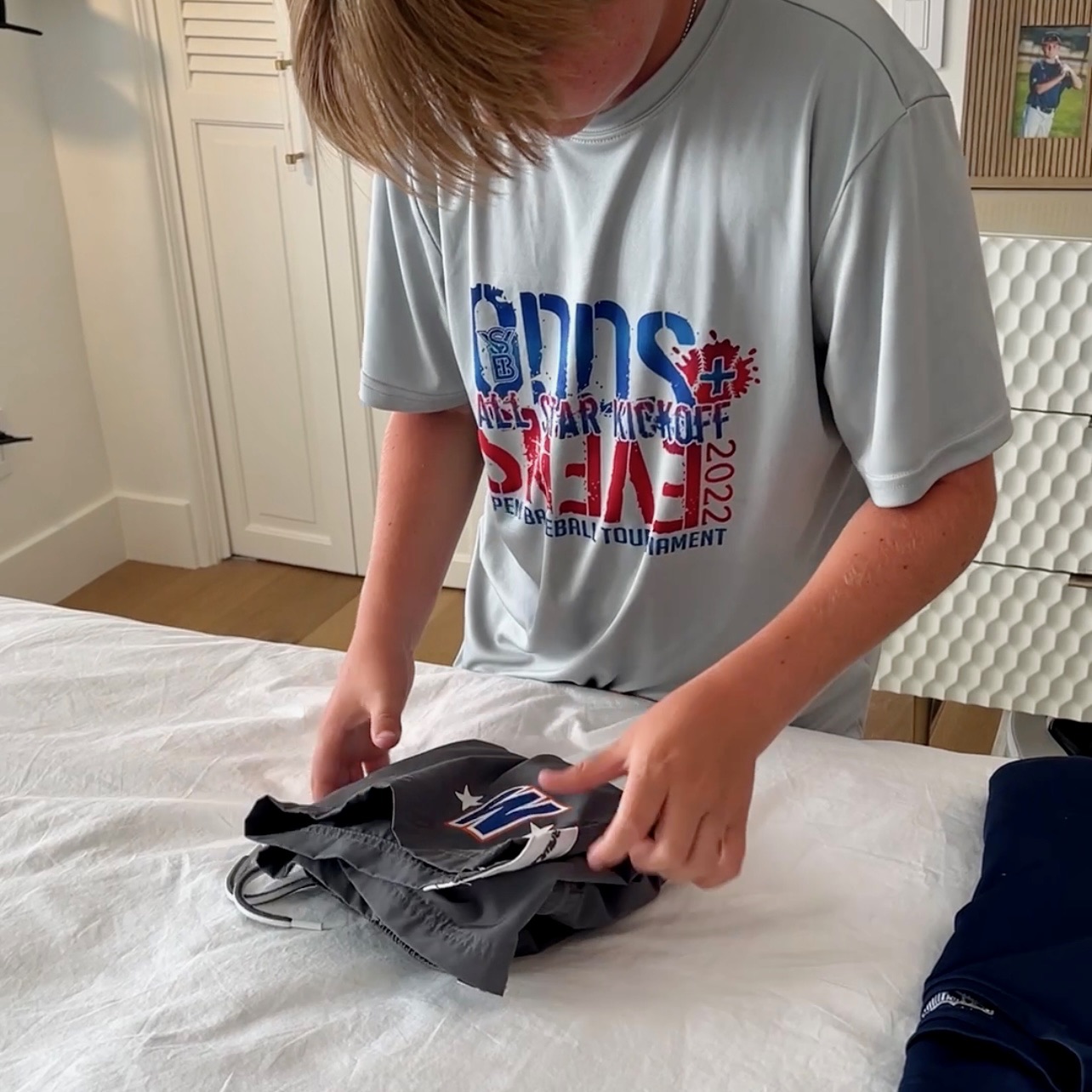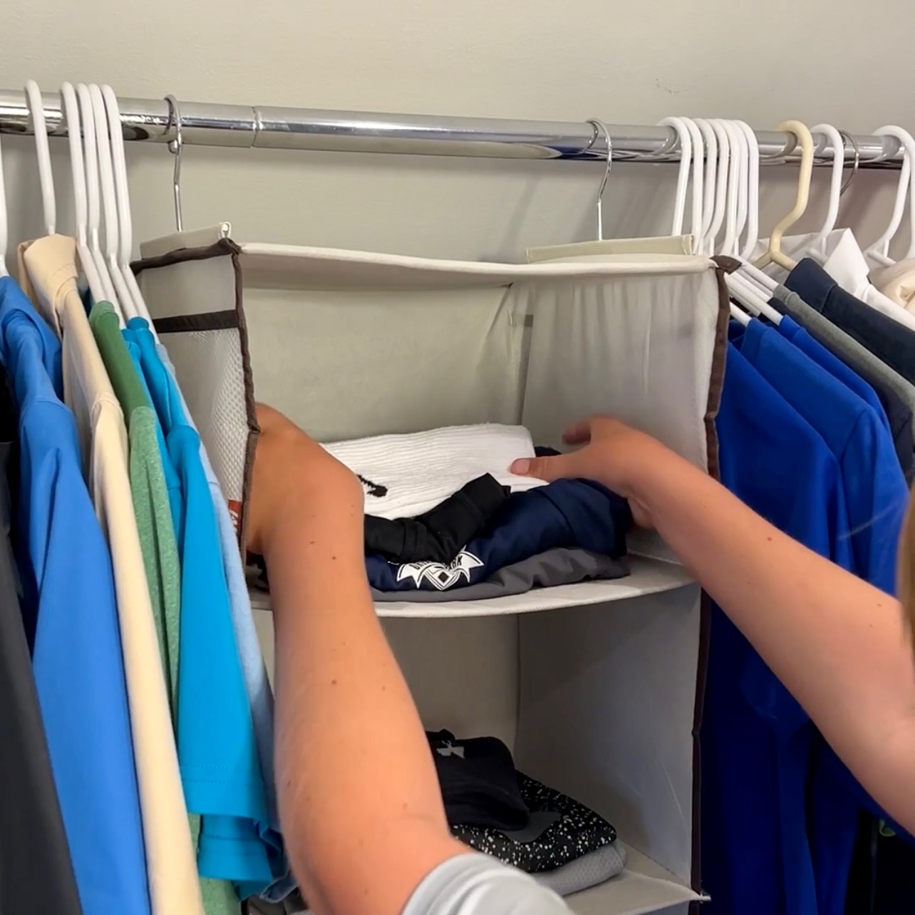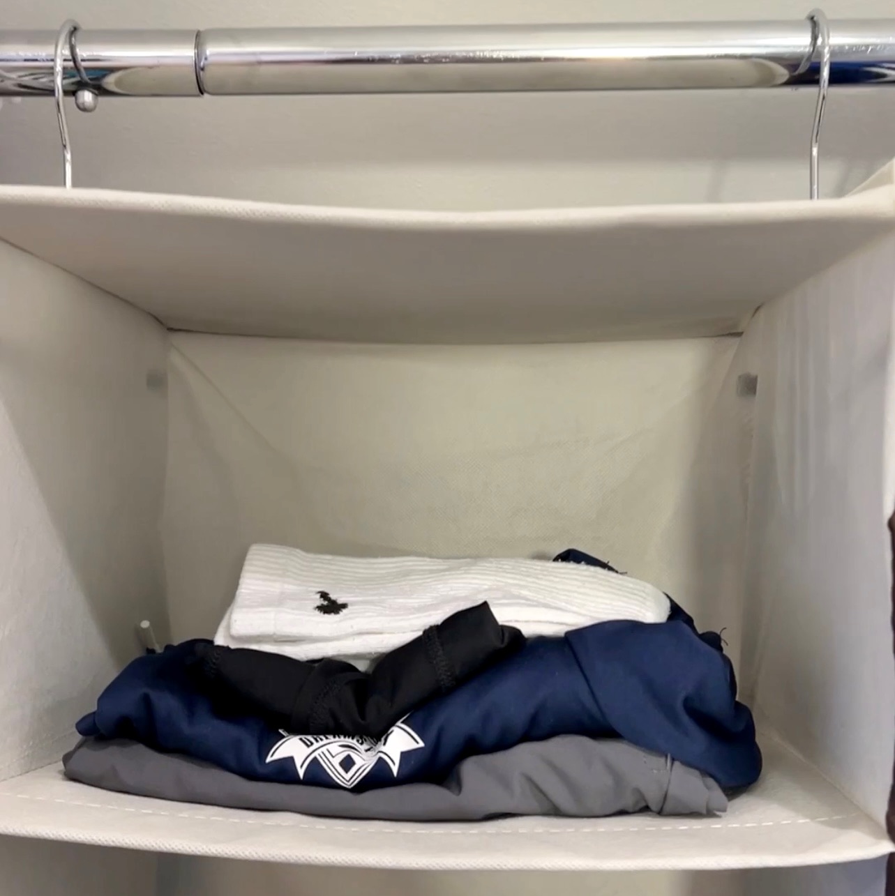All you need is a Hanging Closet Organizer! Have your kids pick out all their clothes of the week, folding them into outfits including socks and underwear. Hang the divider in the closet where they can reach it. Use this kid’s closet hack will get you through the school year!