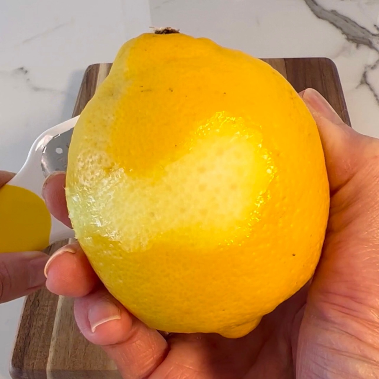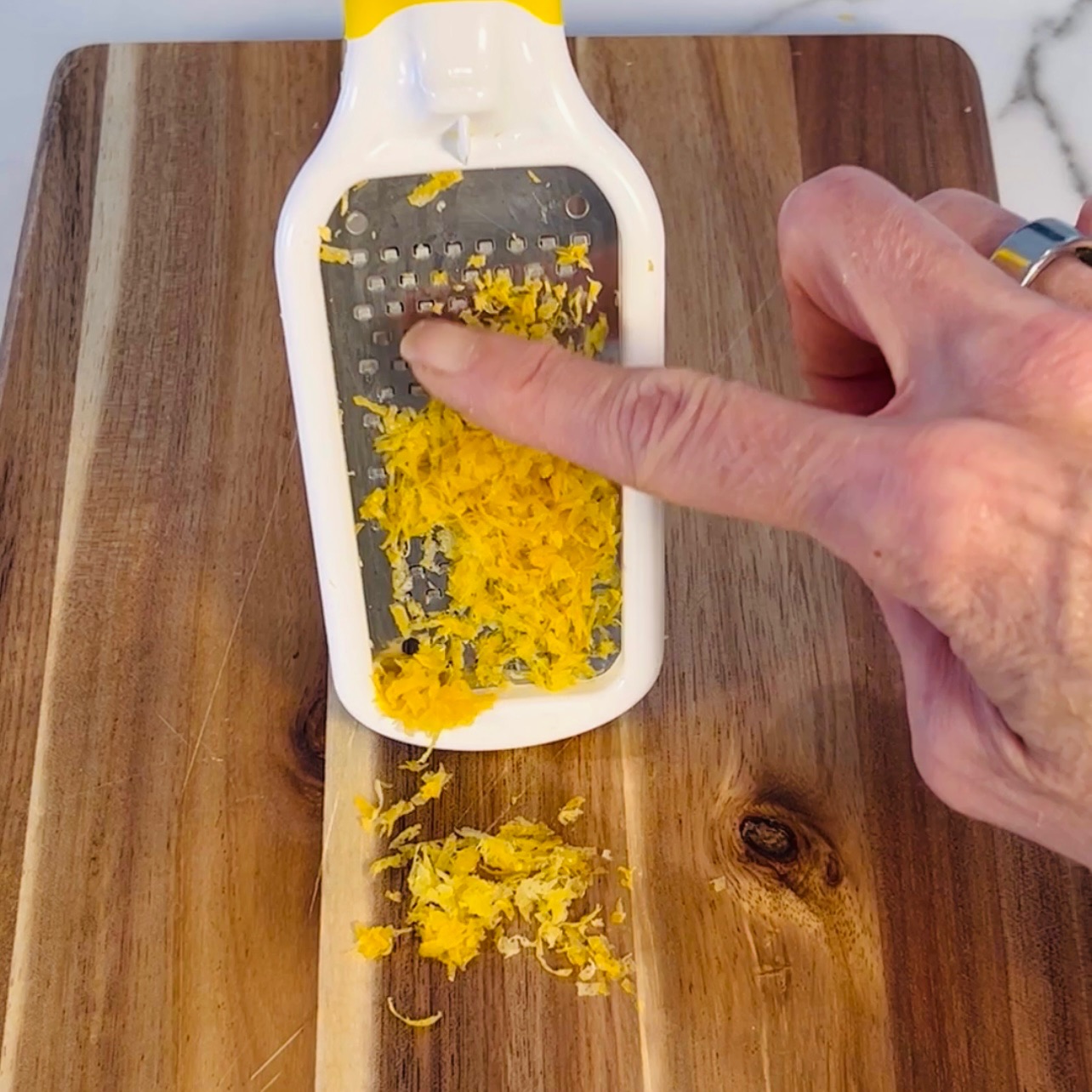The simple solution? Take the zester and put it in your dominant hand. Whatever your zesting goes in the other. Then, pretty much act like you’re shaving (think of the rind as hair.) I told you this one was easy!