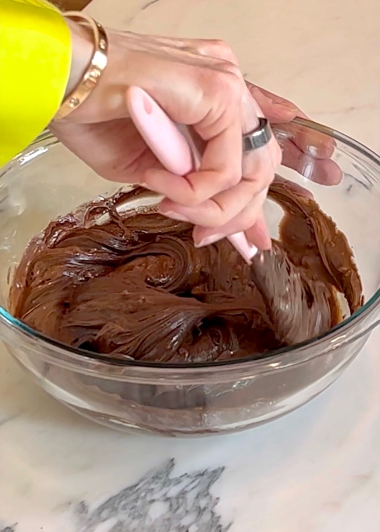 Microwave the chopped chocolate, stirring every 30 seconds until melted, this will take about two minutes.