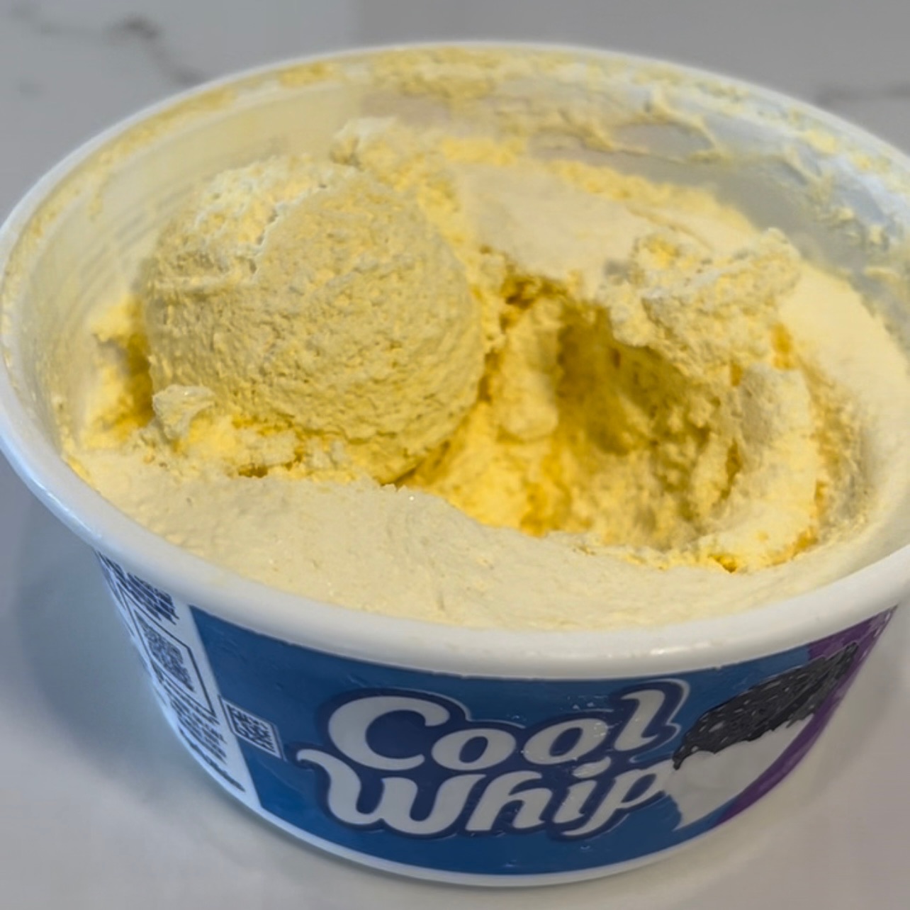 Pour pudding packet into defrosted Cool Whip, mix well, making sure the pudding isn’t lumpy and has dissolved.
