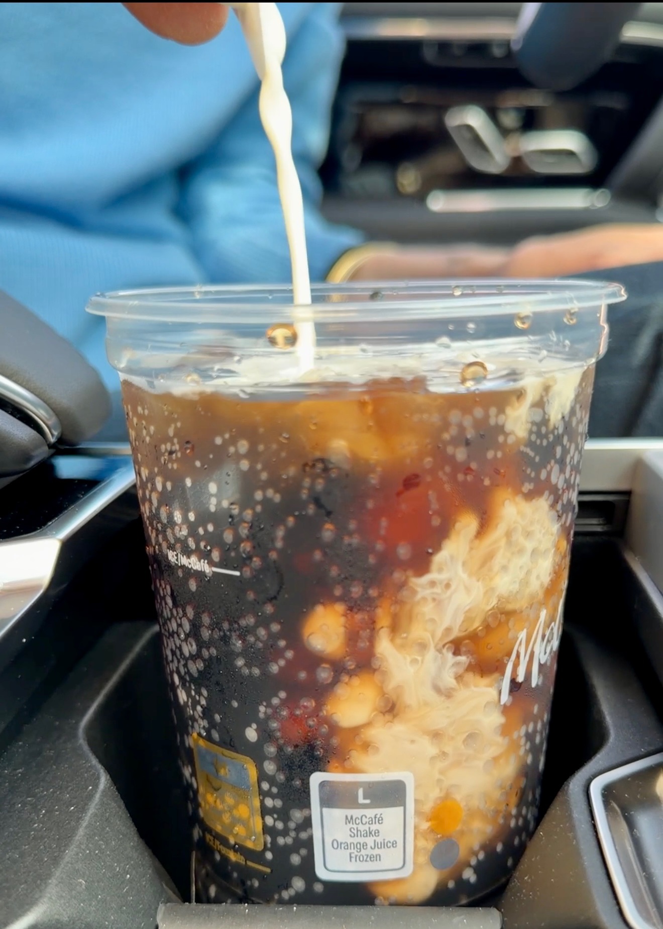This is a low carb hack you probably didn’t see coming, but trust me, sis! I went through the McDonald’s drive-thru and ordered a medium Diet Coke and asked them to add 1 pump of sugar-free vanilla. For this dirty soda hack, you’re going to need two McDonald’s creamers and pour them right in!