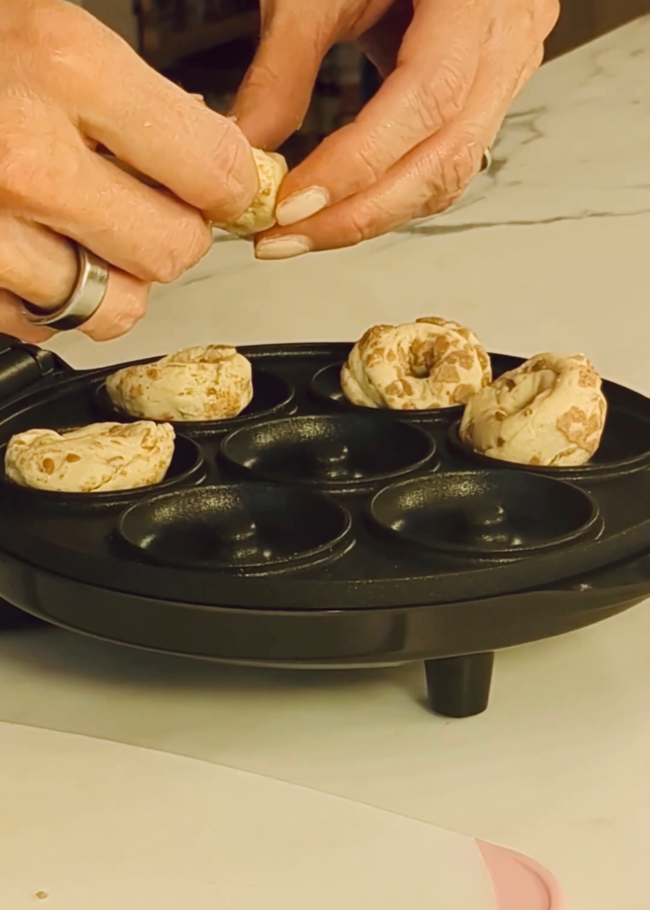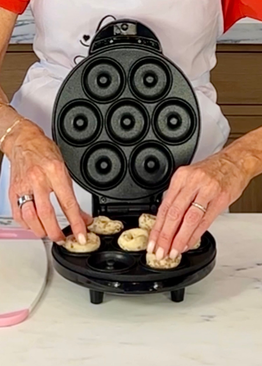 Place in donut maker and “bake” for about 2 minutes, each machine is different, so check at about 1 and half minutes in, you don’t want to over bake them.