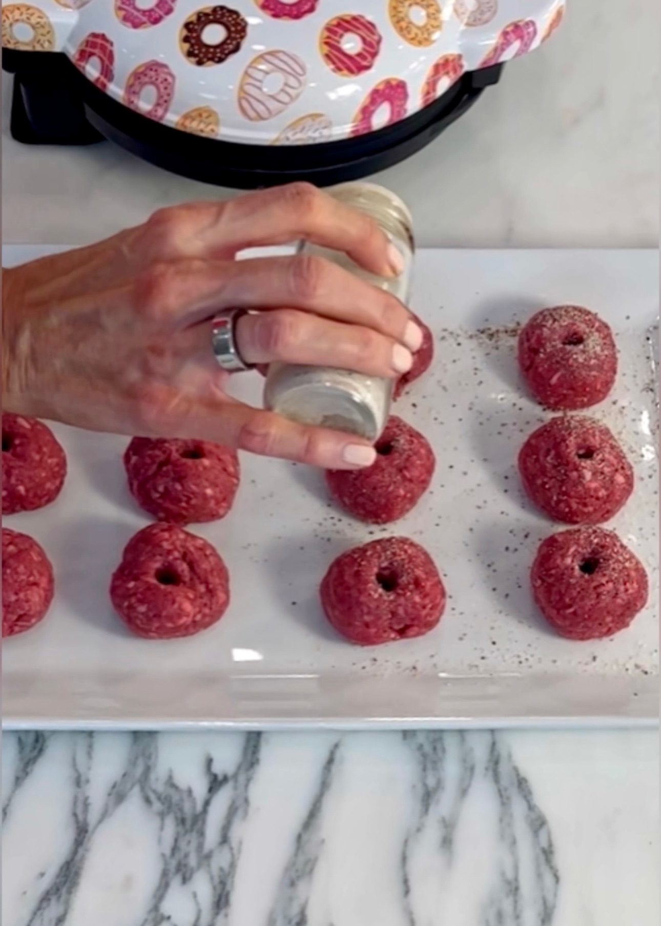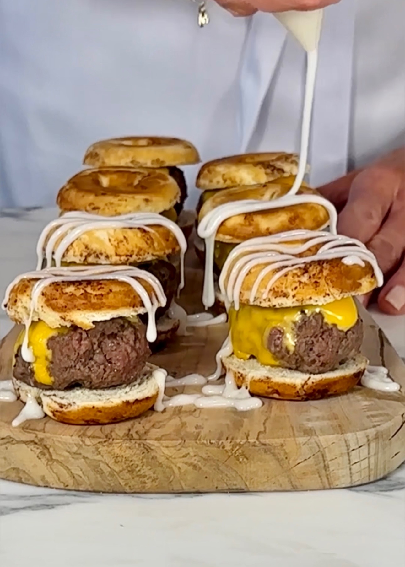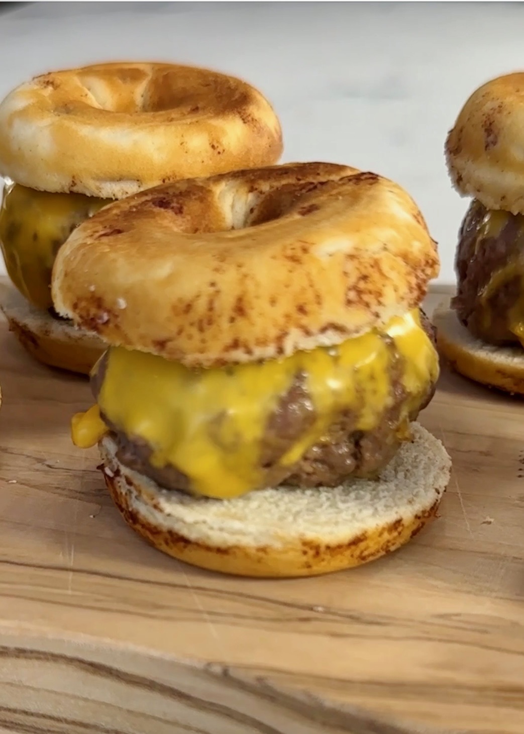 NOTE: If you don’t have a donut maker, bake cinnamon rolls according to the directions and fry or bake your cheeseburgers as you normally would ? Here is the one I used!