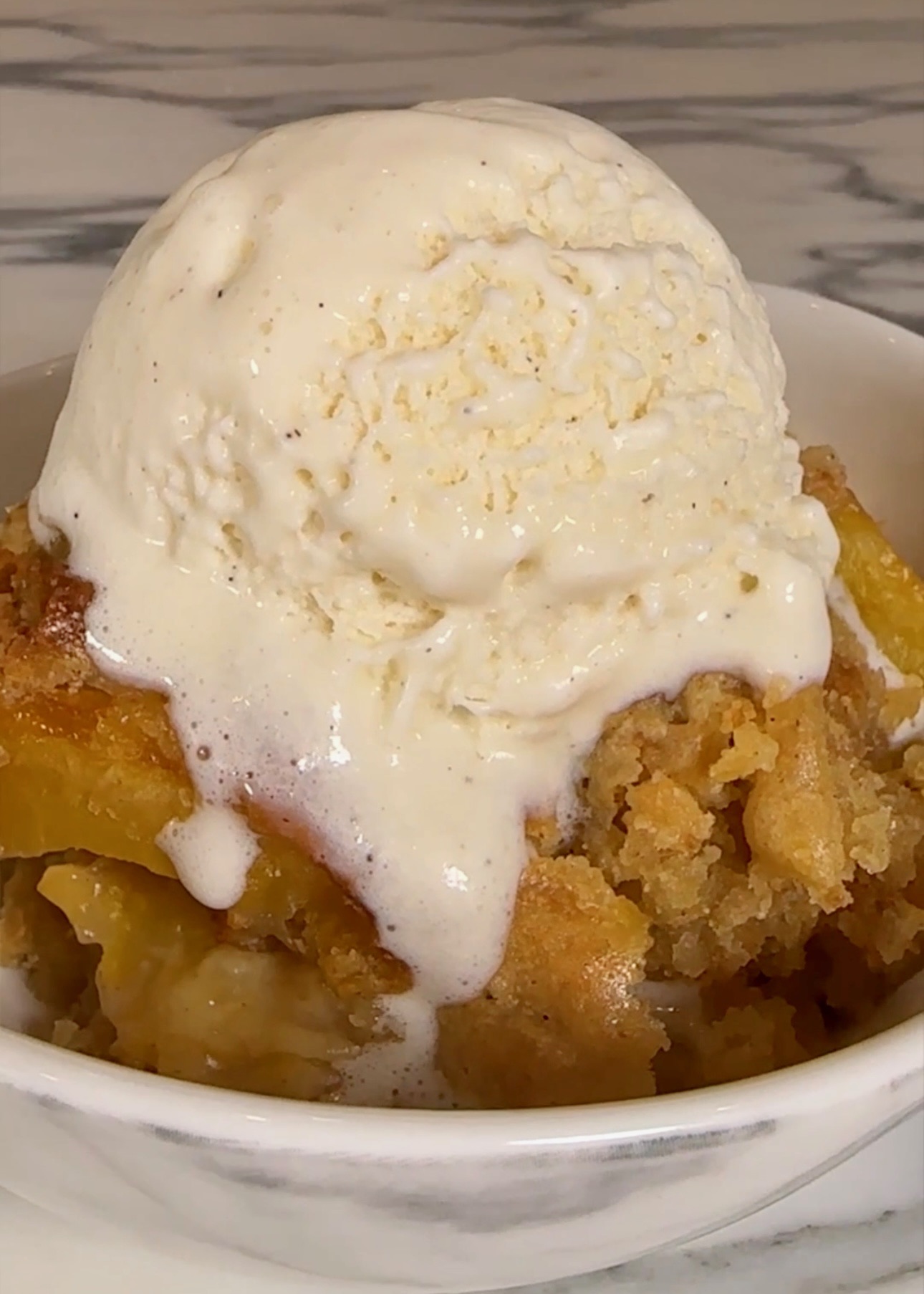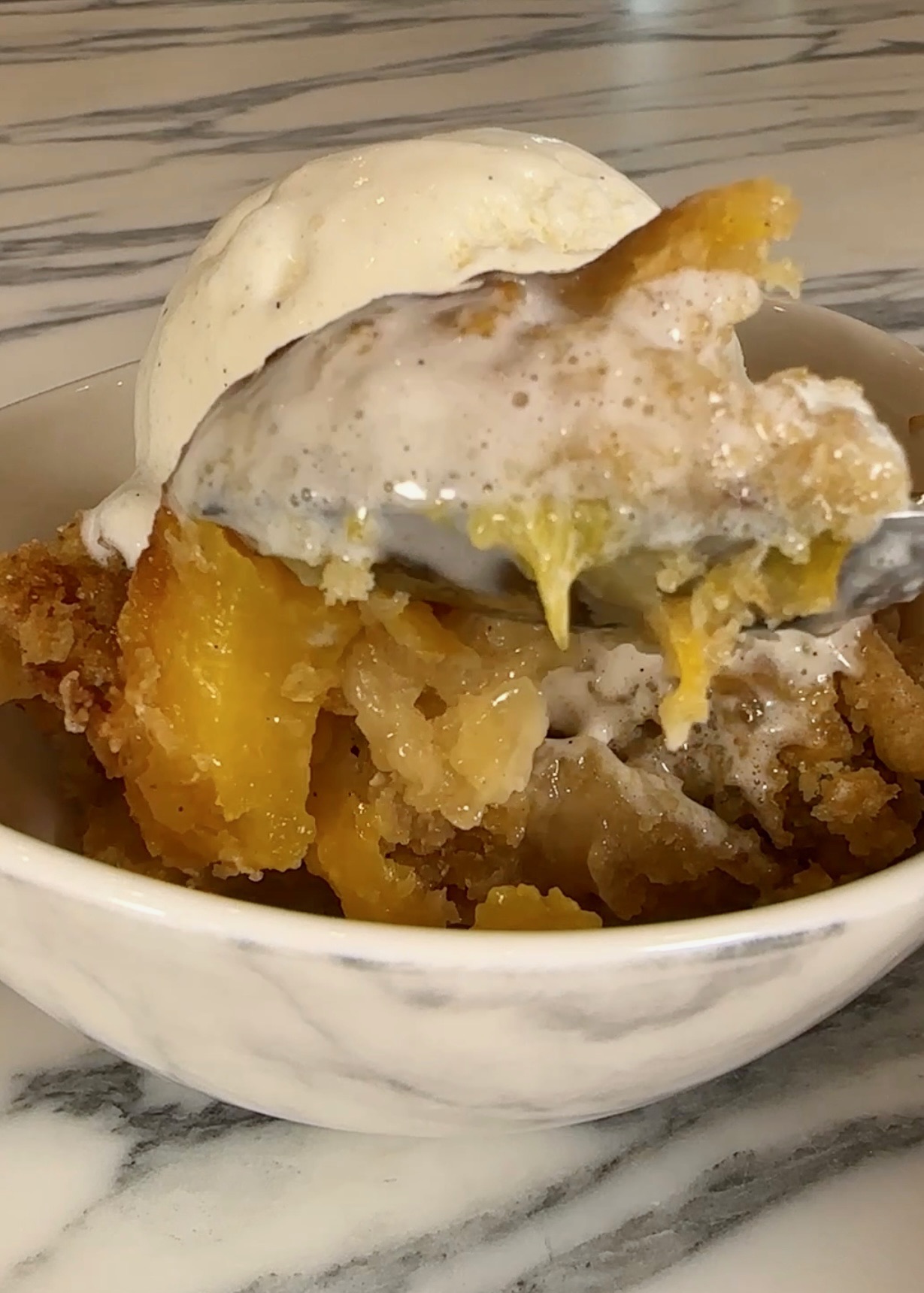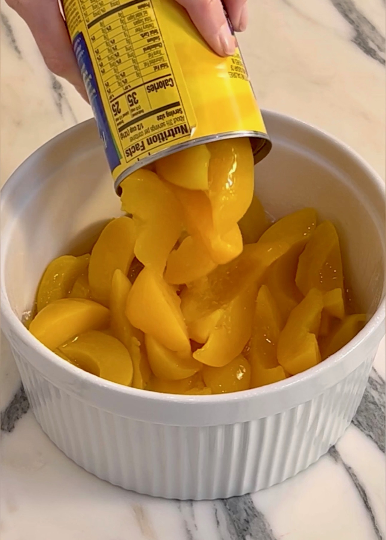 cobblerThis is the easiest peach cobbler hack ever with only 3 ingredients. This recipe took me a while to perfect, as the topping to butter ratio was a trick! One night I blew through 6 cans of peaches trying to get this one right ? But the outcome was worth it!