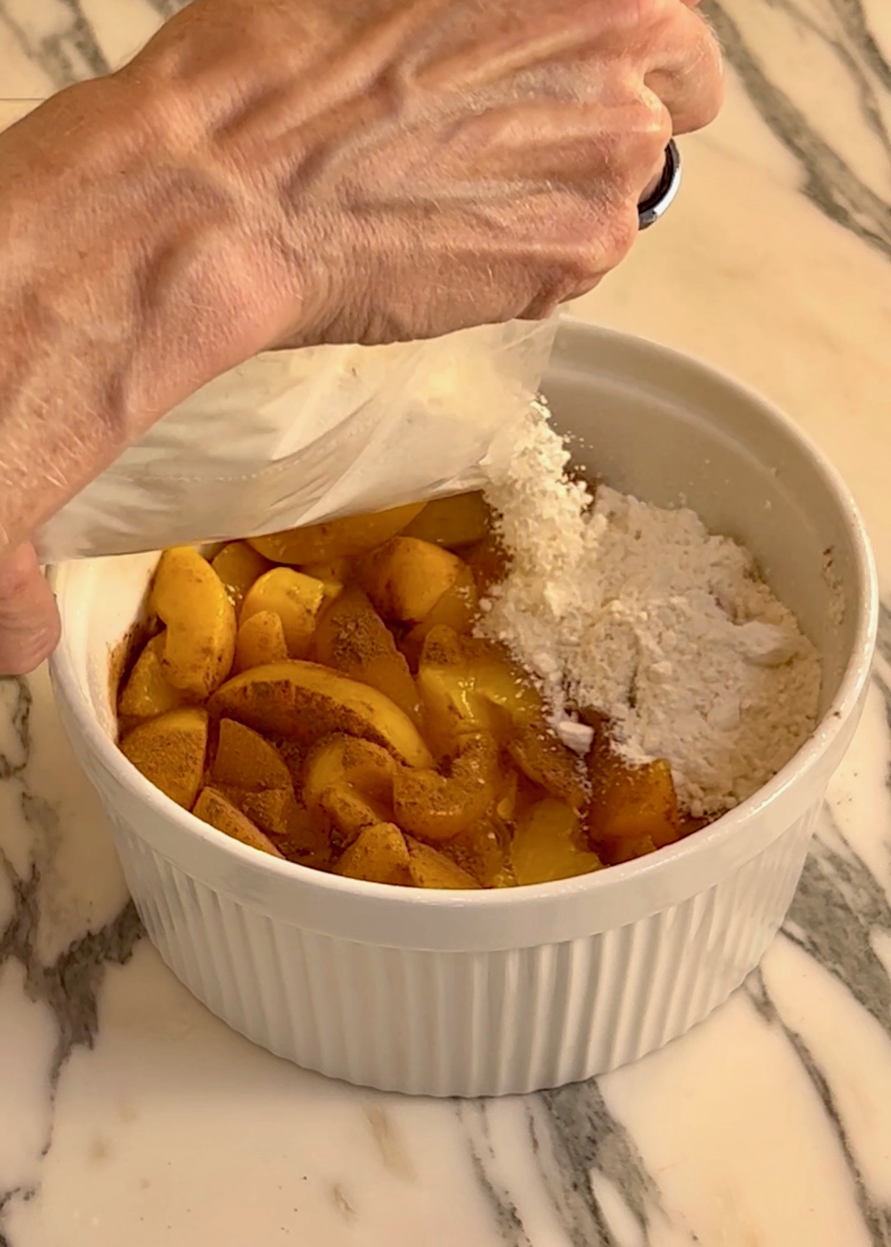 Note: each air fryer is different, so cooking times may vary slightly. Also, the dish will be super hot when it’s done, so I just leave it in the air fryer basket and serve it from there. For extra flavor, add 1 tsp. vanilla to the melted butter before drizzling it on.