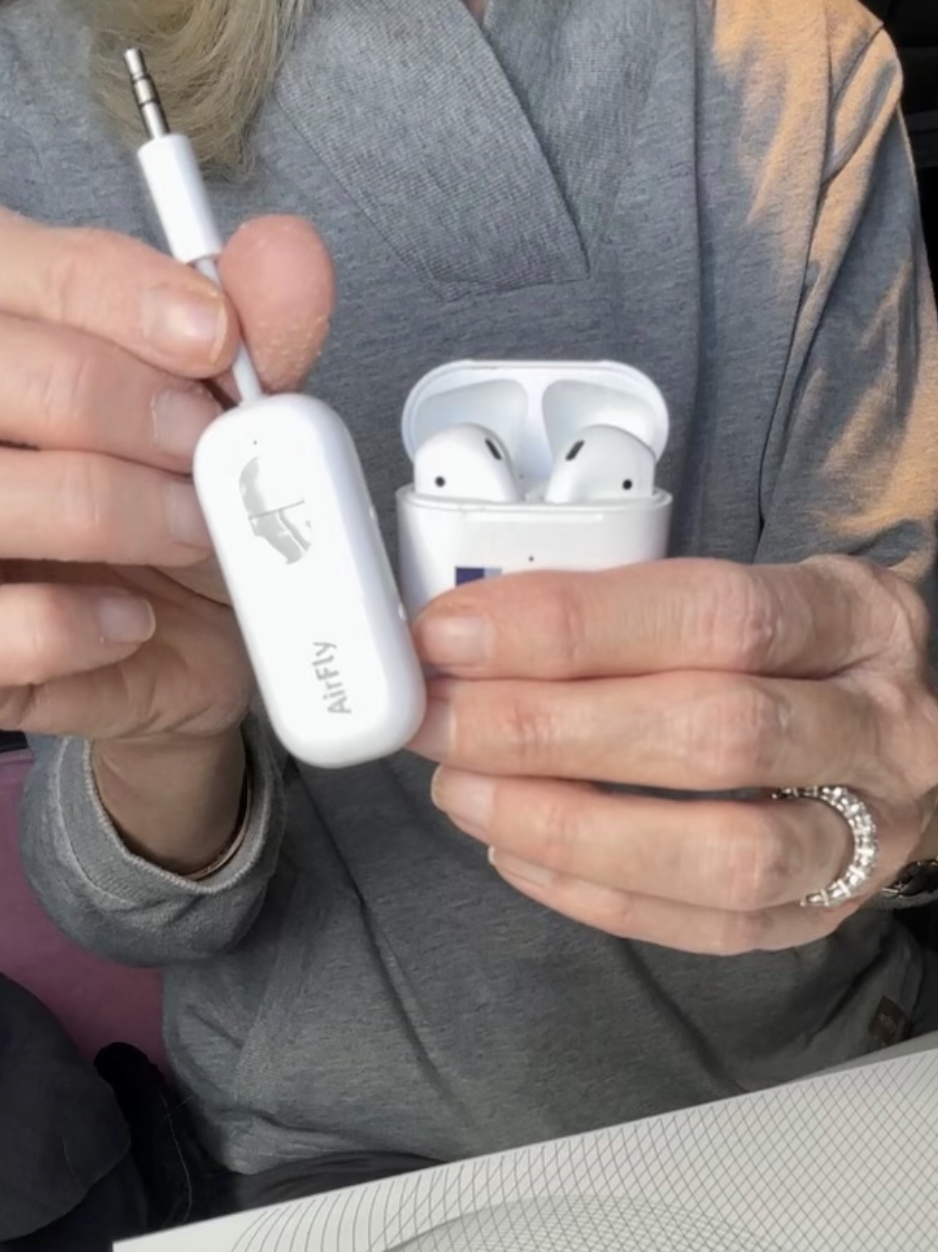 Do you struggle with tangled headphones? With my favorite audio transmitter, you can watch in-flight entertainment with your own buds. Plus, it’s wire-free ? Shop HERE!