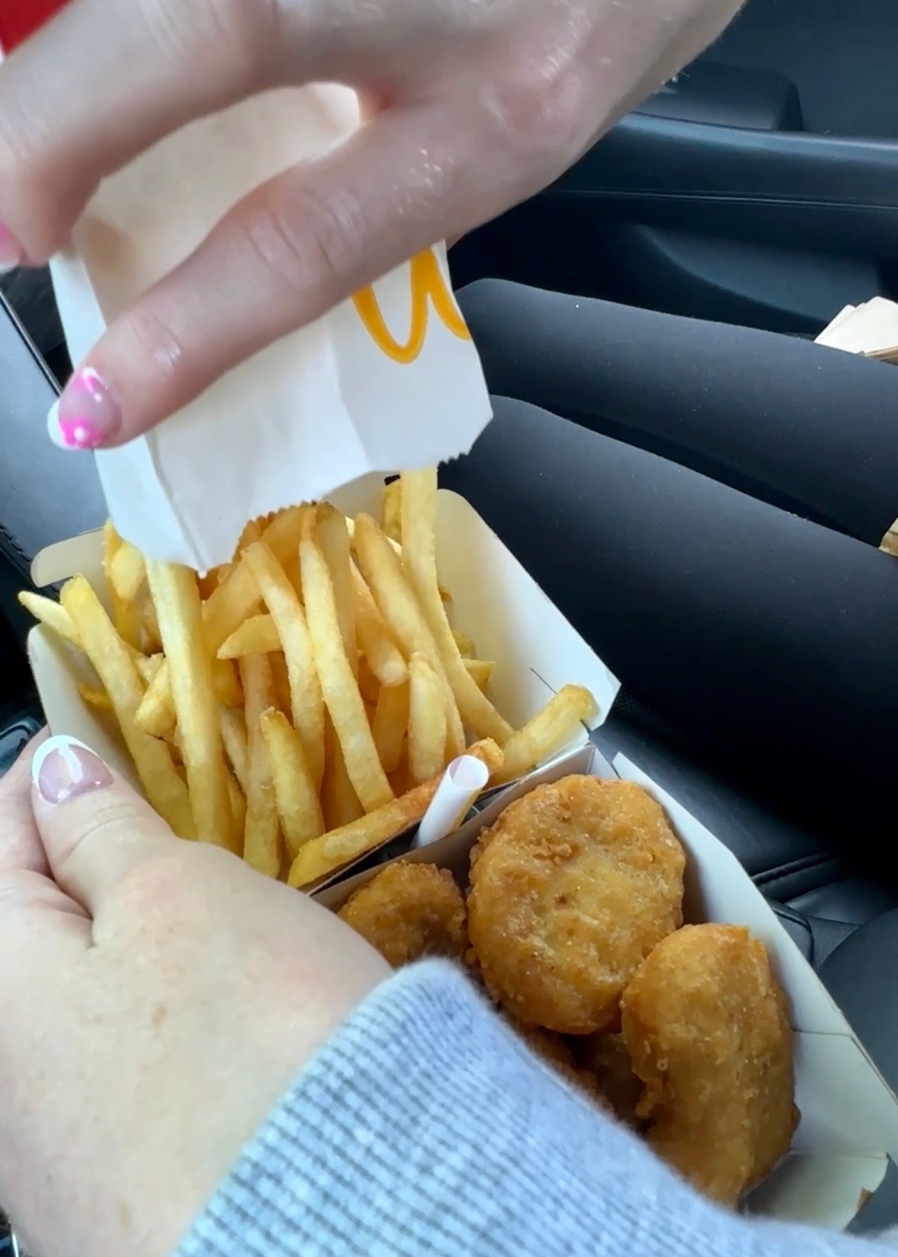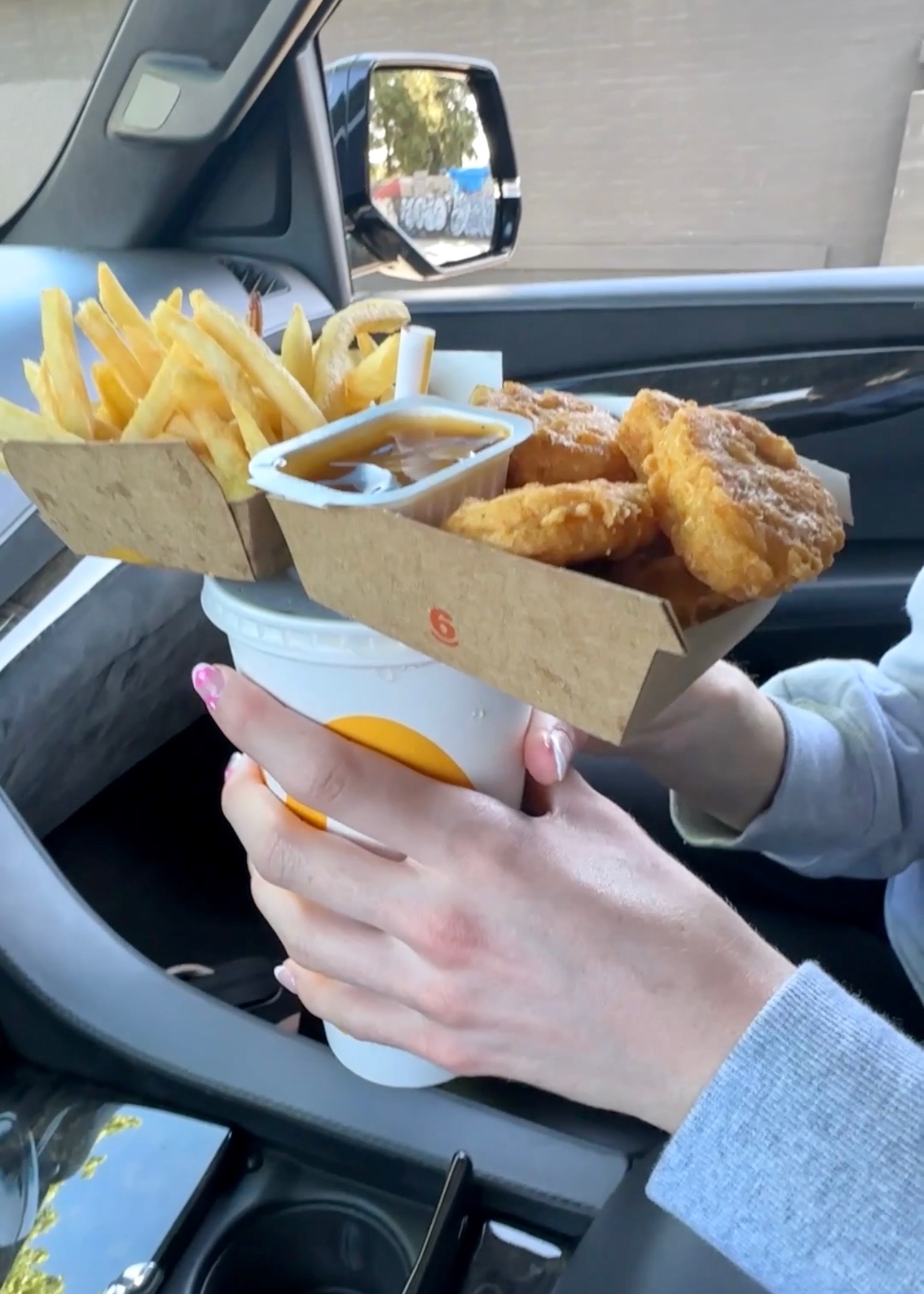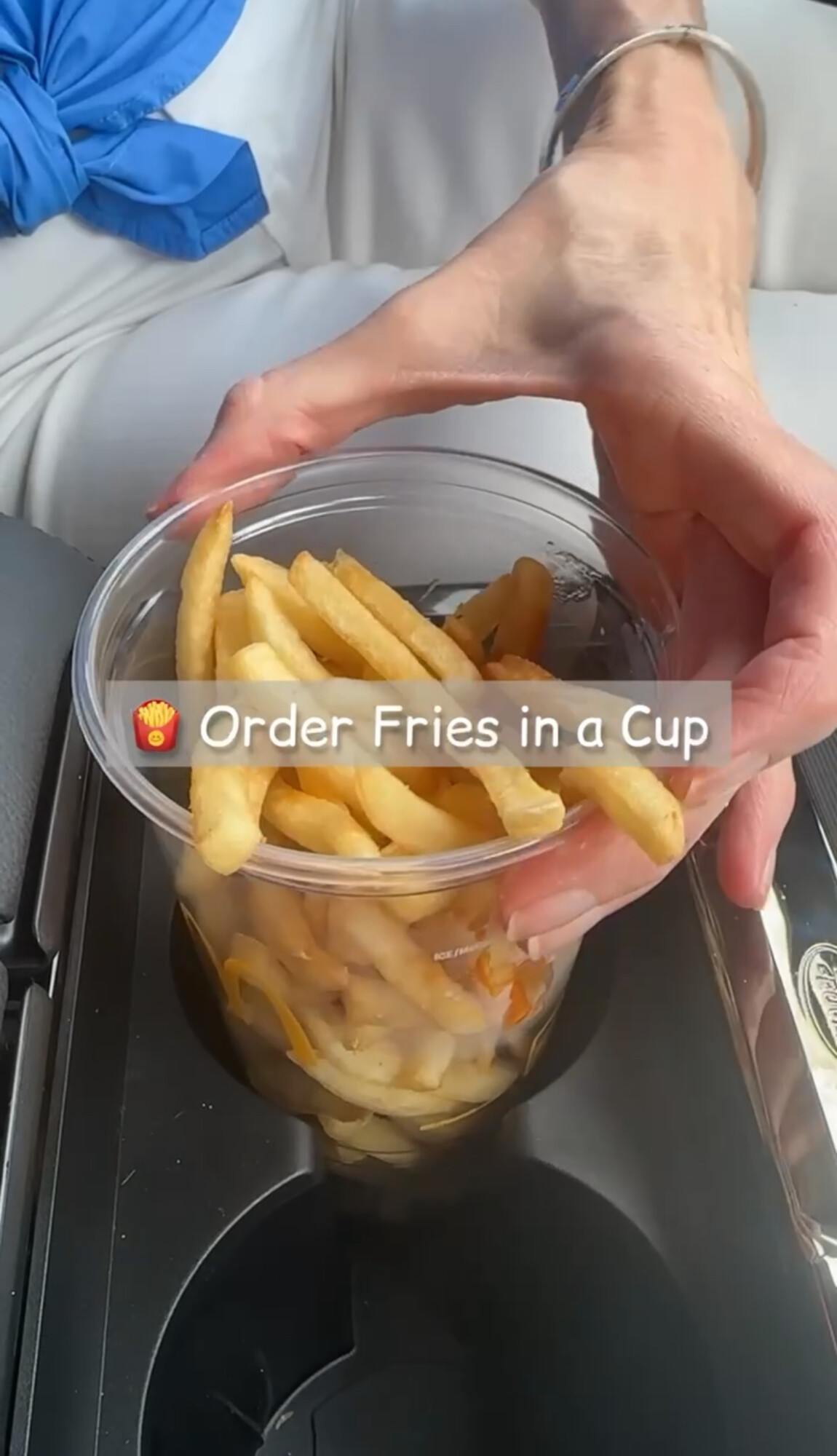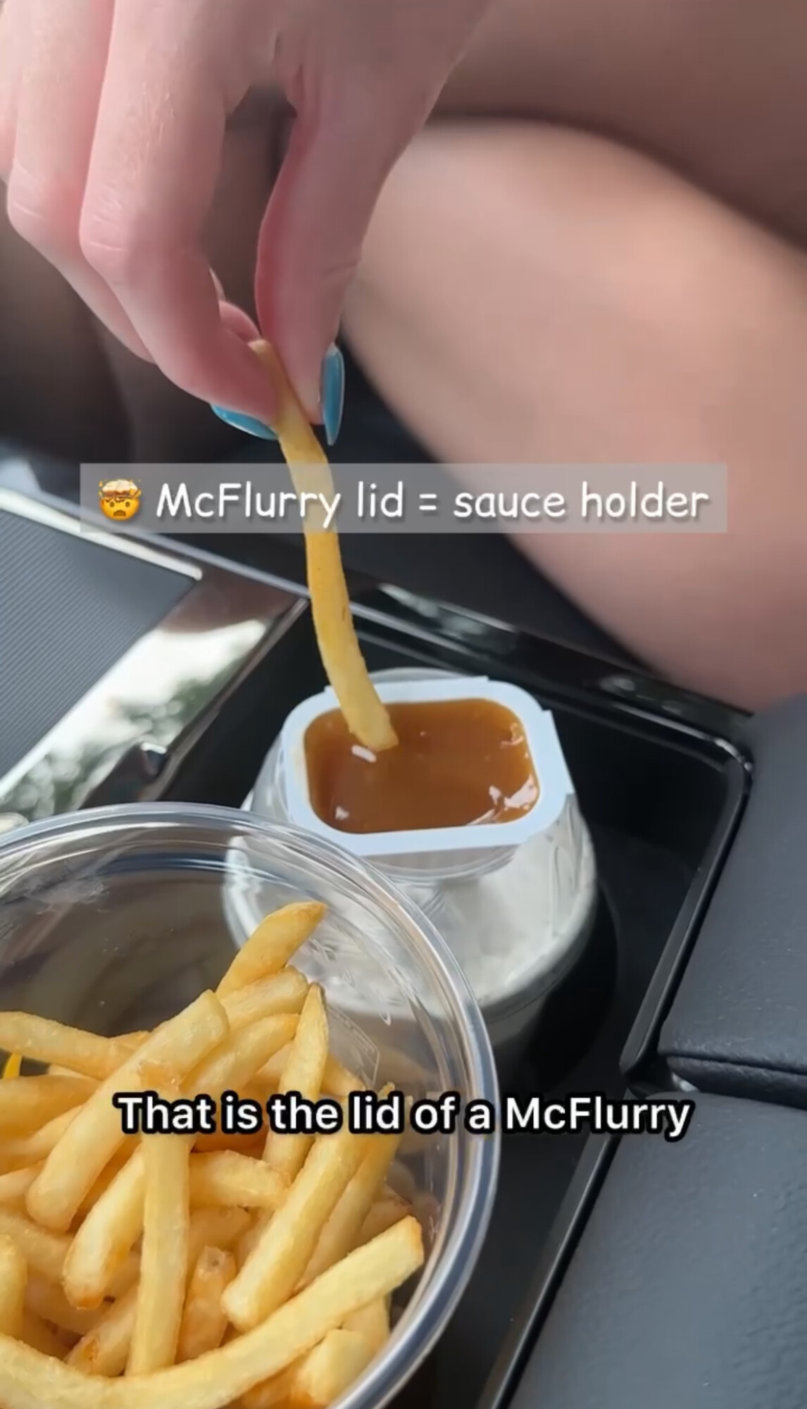 My first drive-thru hack: ask for your order in a cup instead! It’s a safer and much easier way to eat when you are on the road. And let’s take a look at the McFlurry lid. Did you know it also doubles as a sauce holder?! It’s seriously the perfect fit for your sauce to safely dip and eat on the go.