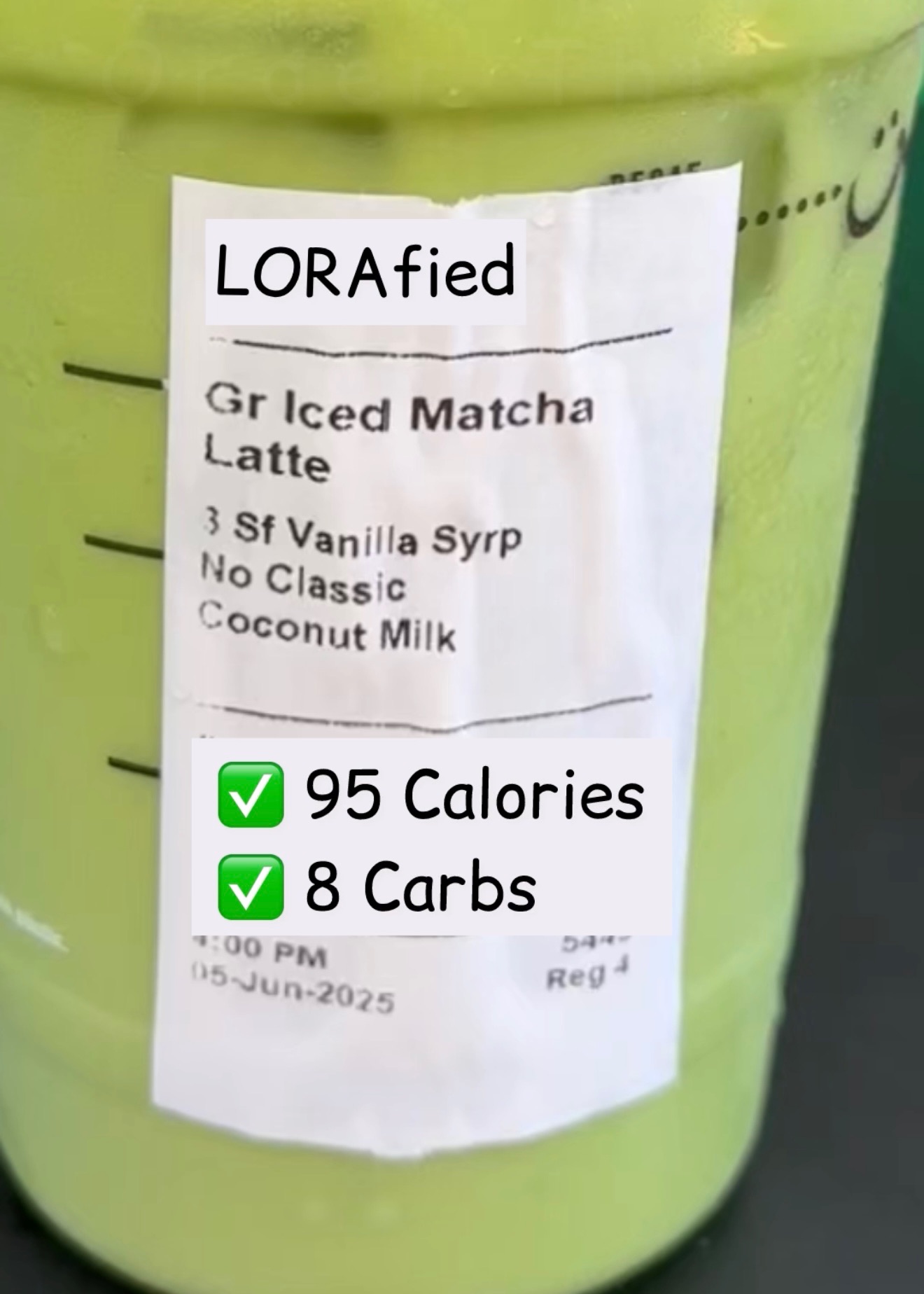 Starbucks’ matcha comes sweetened by default, and classic syrup adds even more sugar. Removing it and adding sugar-free vanilla keeps the drink sweet but low in carbs. Coconut milk gives it that smooth, slightly tropical flavor while keeping things dairy-free.✨💚