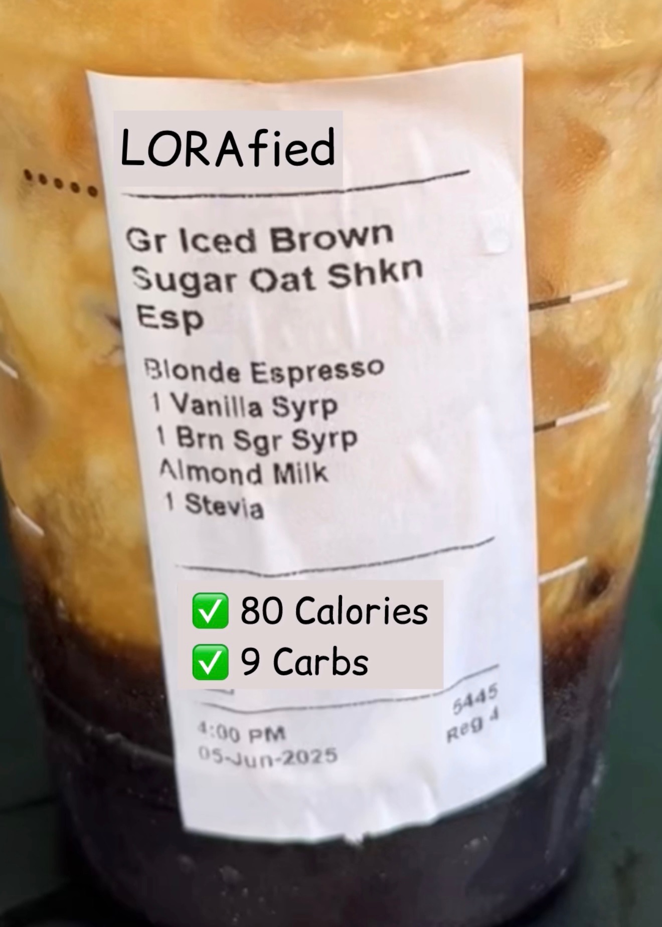 The original uses oat milk and 4 pumps of syrup—aka a sugar overload. Swapping to almond milk and cutting the syrups in half (plus using one sugar-free option) gives you all the bold espresso and cozy brown sugar flavor without the carb crash.