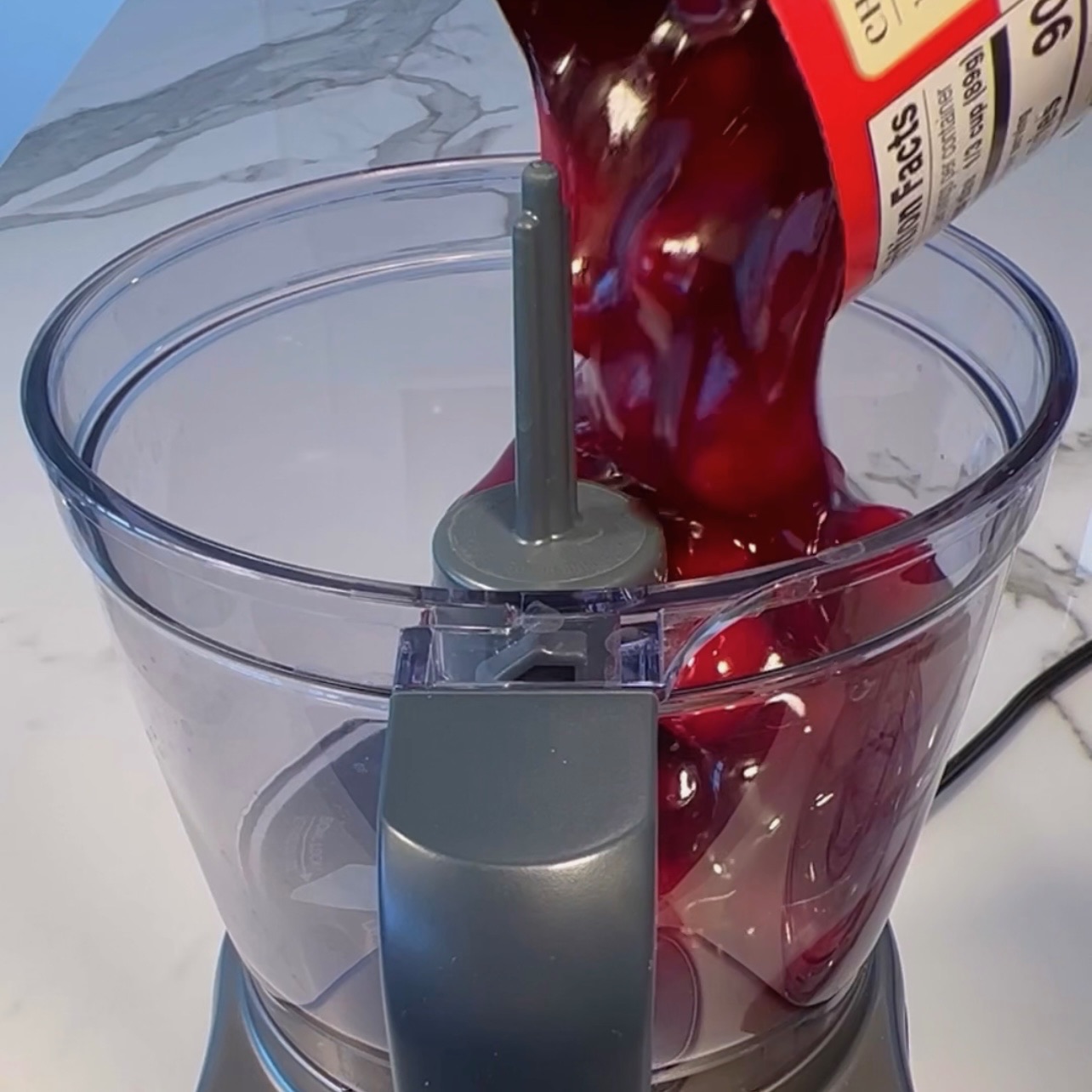 Preheat oven to 350F. Place cherry pie filling (puréed or left whole), 2 eggs and cake mix in a large bowl and blend. Fold in chocolate chips and bake for about 25 minutes. Note: before baking, top with a few more chocolate chips, if desired.
