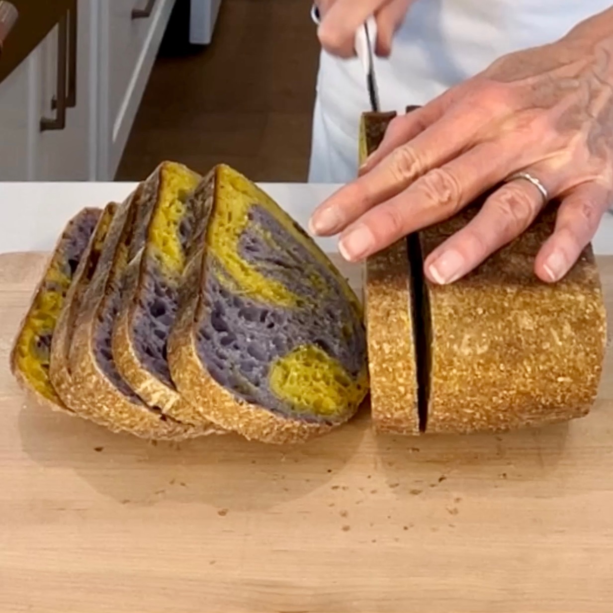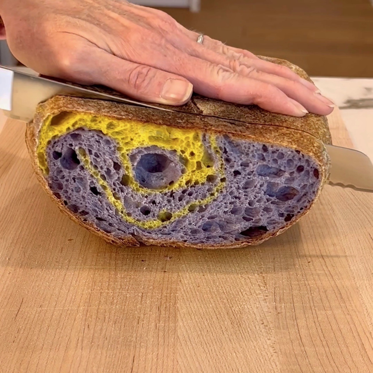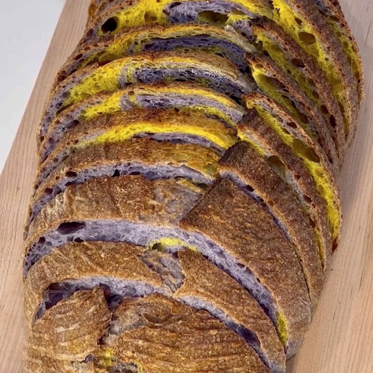 Note: this gorgeous sourdough is from @hasibread They use turmeric and pea flower to create the stunning violet/yellow combo. I don’t have an affiliation with them, but am in love with this bread. According to their site, they ship nationwide. I found them @erewhonmarket in LA.