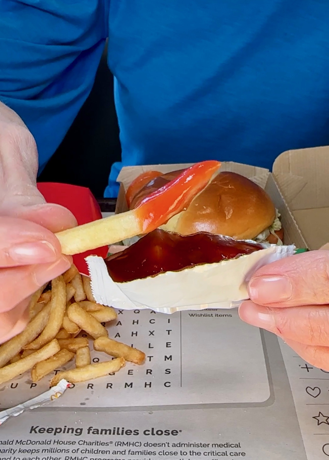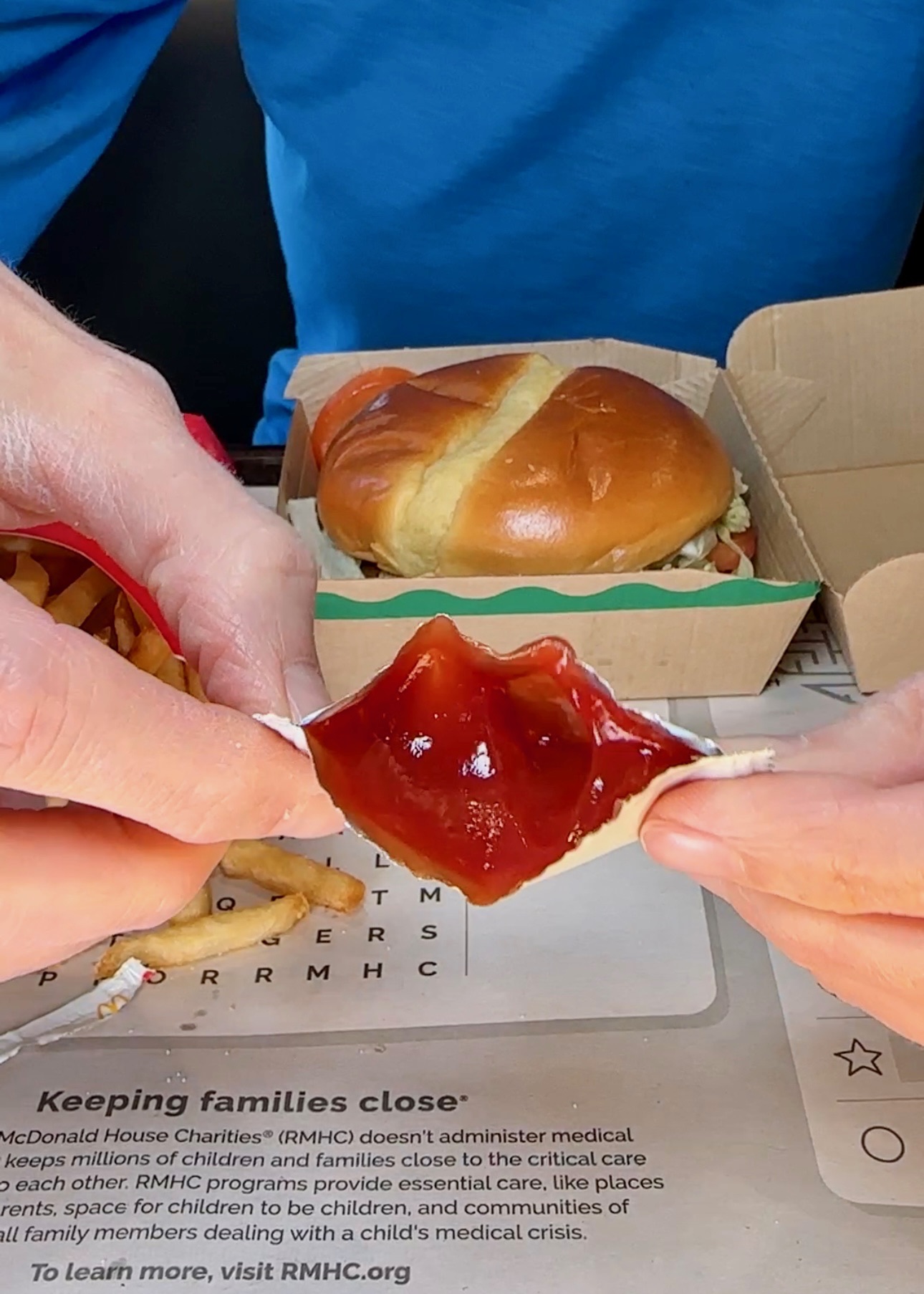 Creating this little pouch isn’t just adorable, it also keeps your sauce cleaned and contained, instead of making a giant mess. This is also my secret for getting the perfect French fry to ketchup ratio.