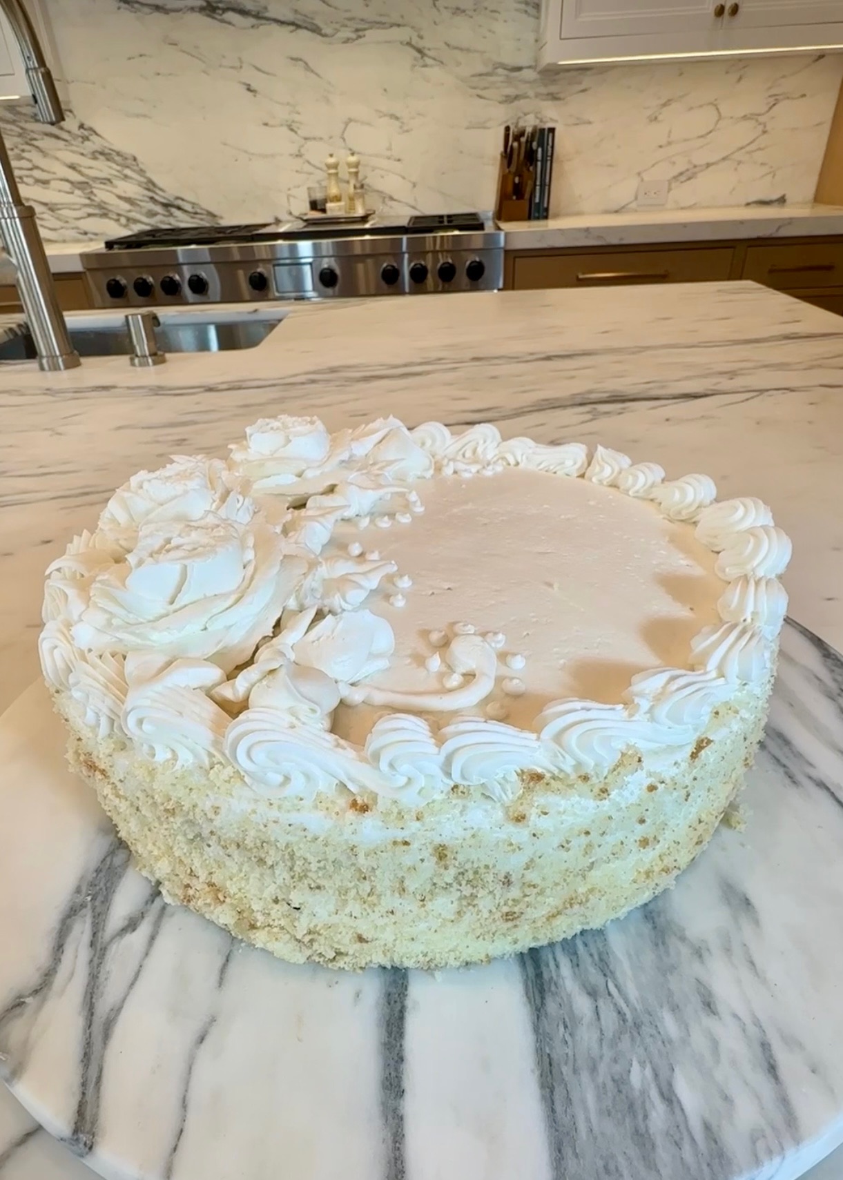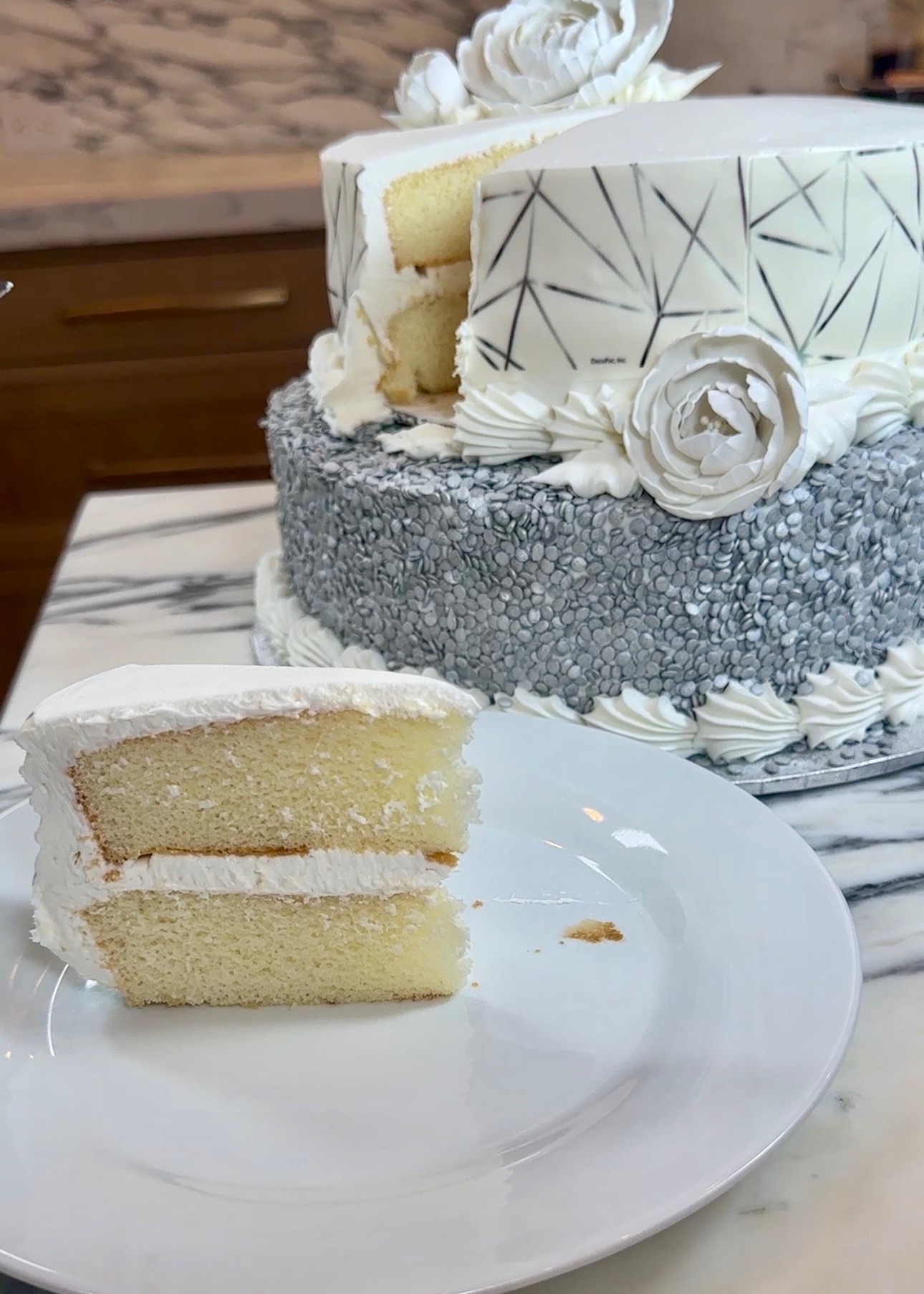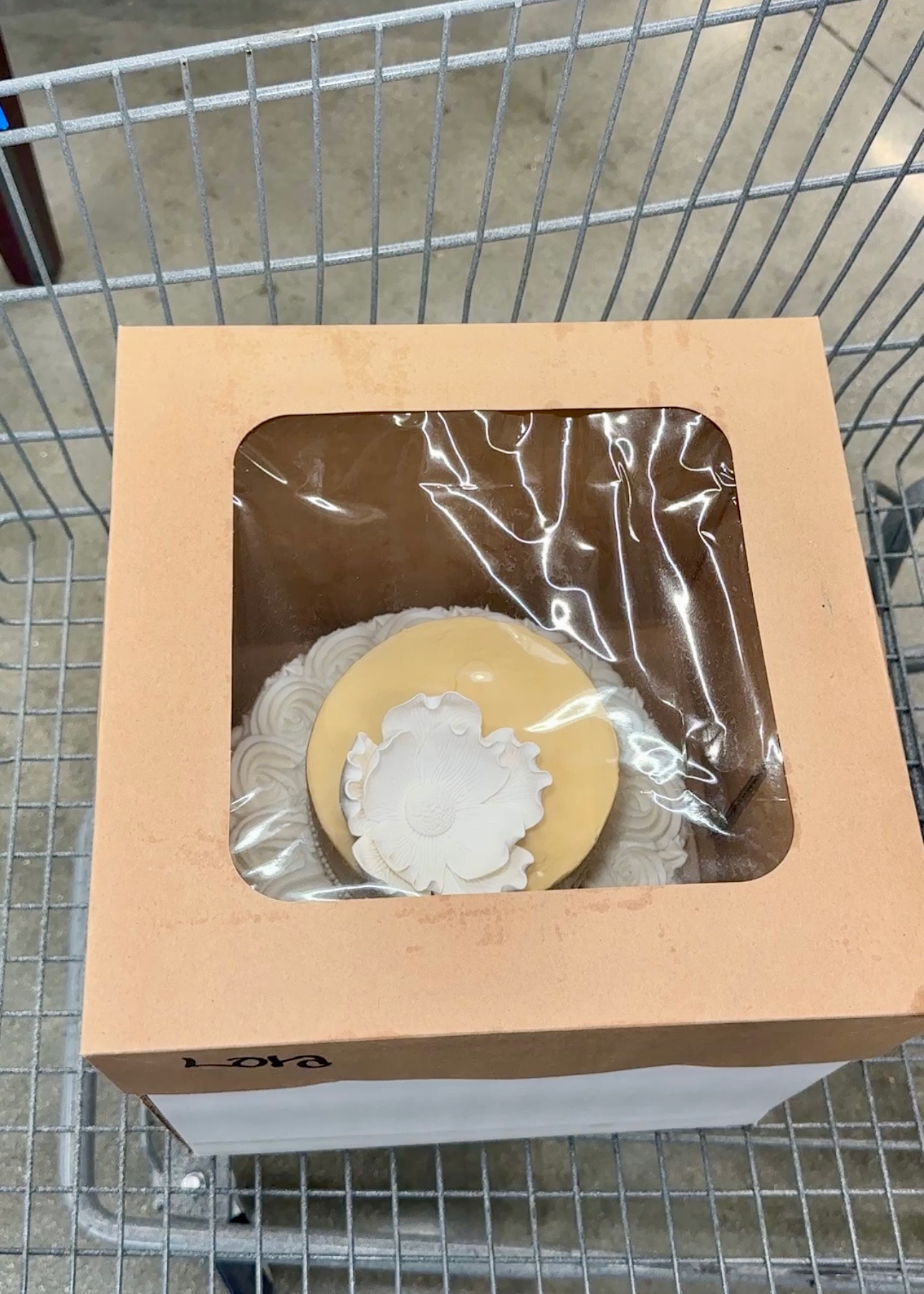 Next up… Walmart! This cake is $68 and serves 68 guests. This cake was a stunner and looked most like my own wedding cake! I noted this cake was a little bit more dense in texture. Just like Sam’s Club, they made it super easy to transfer this cake safely.