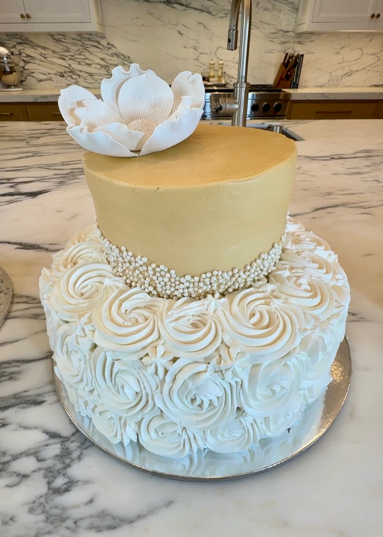 Up next is the grocery store. I went to my local grocery store Ralph’s that is owned by Kroger. This cake is $30 and serves 36 guests. This cake required a little at home assembly, but for only $30, doing the touchups is worth it. The frosting on this cake was amazing! Now you can officially say you made your own wedding cake!