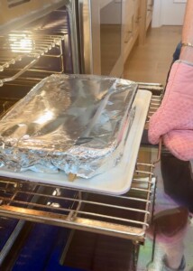 Cover the dish with a layer of parchment paper and foil (foil on top!) and bake for 30–40 minutes. Then uncover and let them bake for another 5 minutes so the tops get perfectly golden and gooey 🤤✨