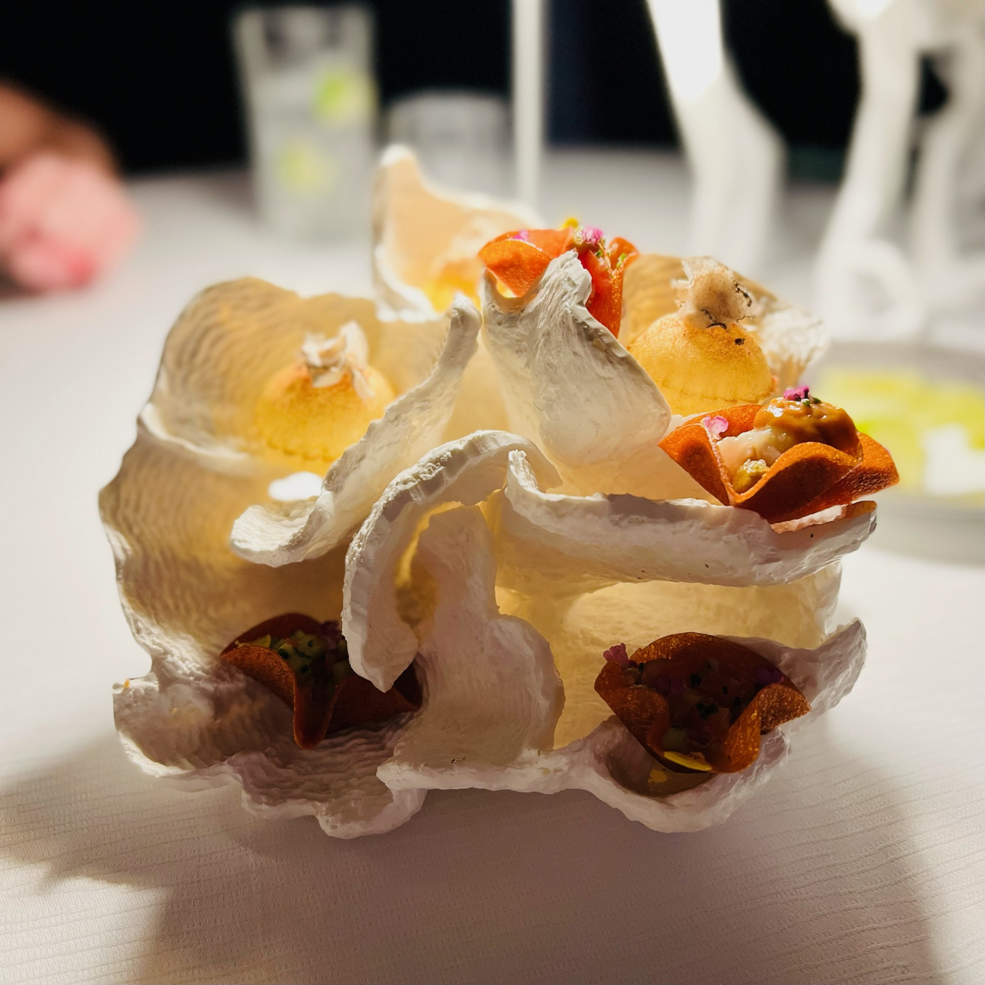 The food is so stunning and art like, it’s hard to believe it’s edible, especially the gold flake topped potato puffs! Just curious, who was the first person who decided eating gold was a good idea?!? It’s a decadent notion, but I think I’d rather wear it! With that said, I tossed that little puppy back like it was a Cool Ranch Dorito! DELICIOUS!