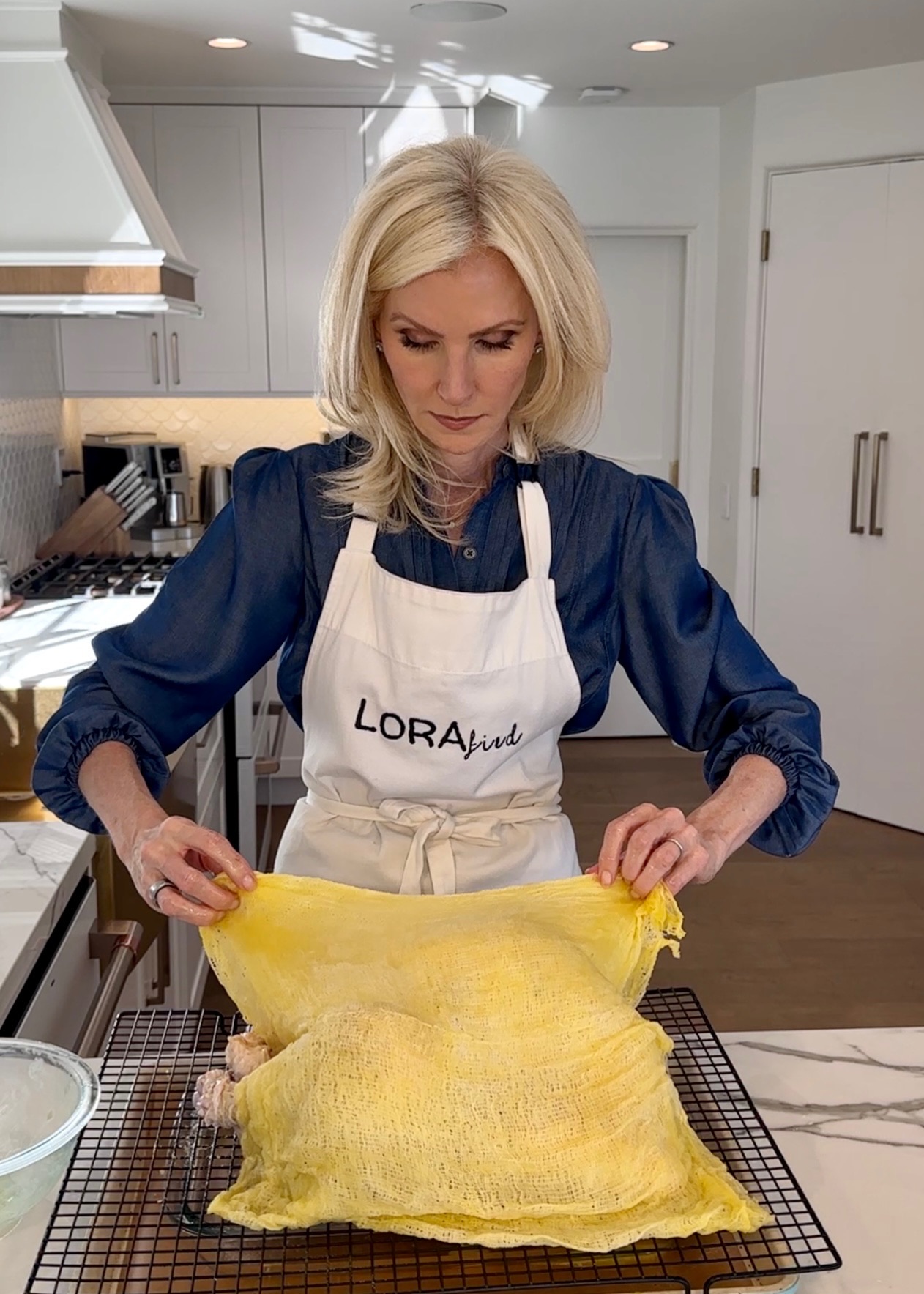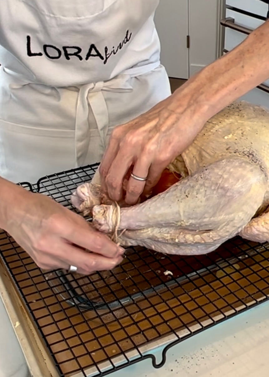 Fill cavity with citrus, veggies & herbs (I use an orange, onion, celery, rosemary & thyme)