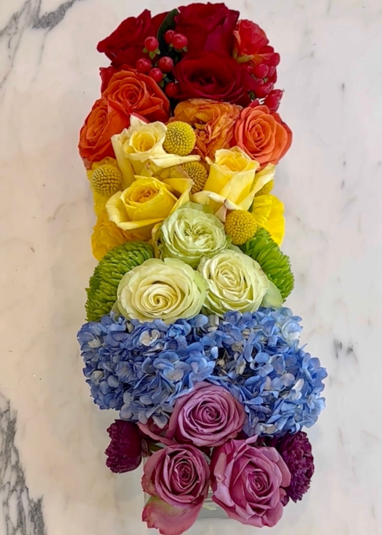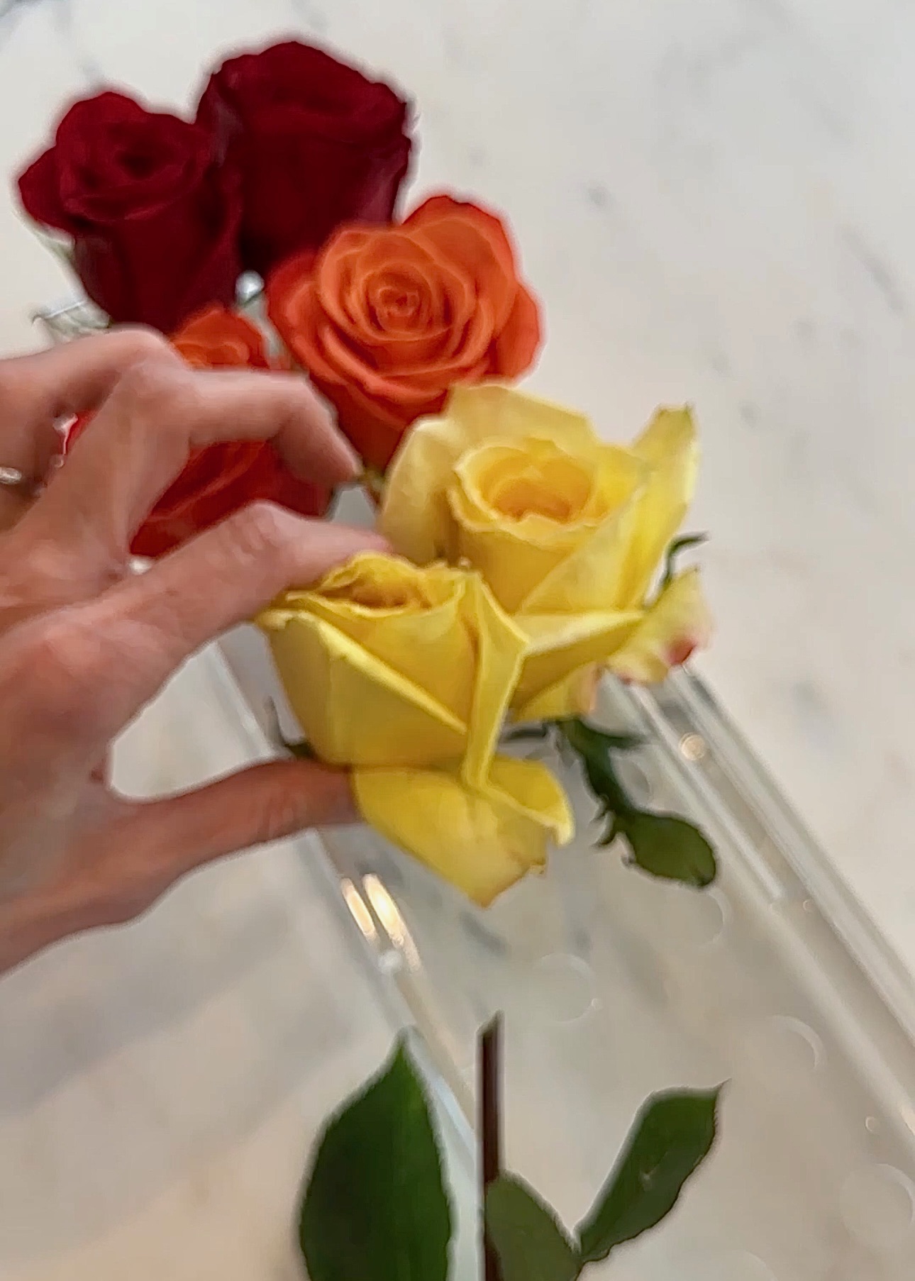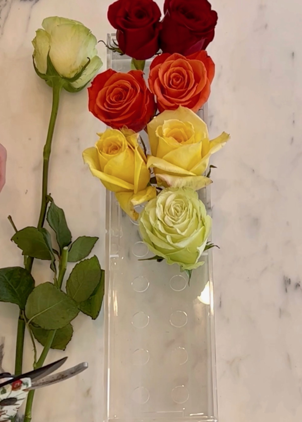 Introducing my 2 step flower arranging hack! Any flowers and any color in this vase will make you look like a pro. There are so many gorgeous spring colors right now, I decided to create this rainbow, here’s how you can do it, too!